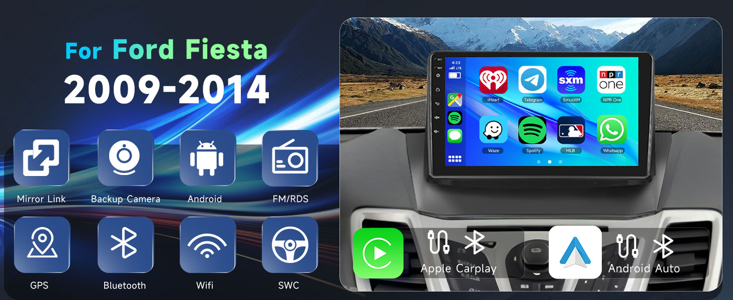 【2 64G】9'' Autoradio 2 Din Per Ford Fiesta 2009 2014 Con Carplay Android Auto senza fili Mirror link,Android 13 Auto Radio Con Schermo HiFi Bluetooth RDS/FM AHD Back up Camera CANBUS : Amazon.it: Elettronica