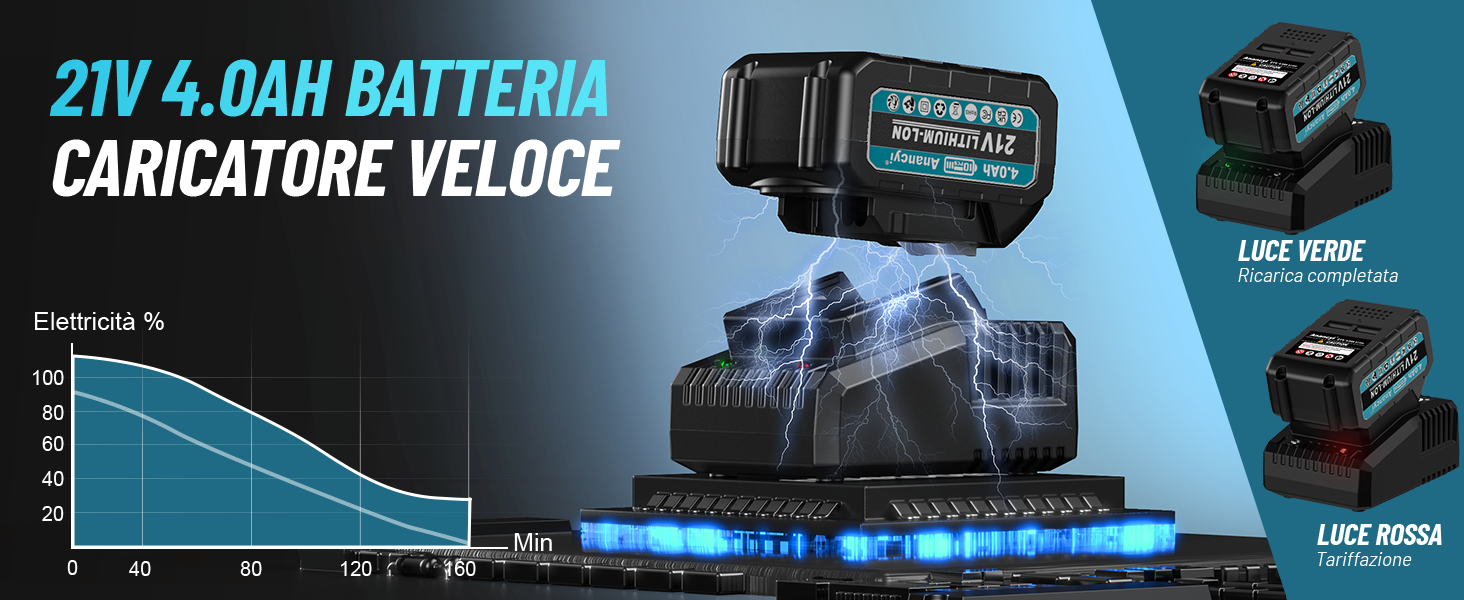 Informazioni su questo articolo Super forte coppia di rotazione e 3 velocità vibrante: l'avvitatore a percussione può fornire una coppia massima di rottura di 1300 Nm e una velocità massima di 3800 RPM. Impostare tra 0 – 2800 giri/min, 0-3300 giri/min e 0-3800 giri/min ed eseguire attrezzature agricole, pick-up, serrare pneumatici di grandi dimensioni, bulloni e dadi arrugginiti, riparare attrezzature pesanti, camper o altre applicazioni industriali. Risparmia tempo e fatica durante il montaggio degli pneumatici, riparazione auto e progetti di costruzione. Due direzioni e modalità freno auto: questa avvitatore a percussione elettrica può funzionare con protezione antibloccaggio. Modalità avanti e indietro. Questo avvitatore a percussione elettrico a batteria può essere utilizzato con protezione antibloccaggio. In modalità inversa, dopo aver allentato il dado o la vite, il dispositivo di arresto del freno viene attivato e riduce la velocità e la coppia per evitare che il dado vada nel nulla e non possa impigliarsi. Dimensioni compatte e illuminazione ottimale: grazie alle sue dimensioni compatte, questo avvitatore a percussione è facile da usare e l'impugnatura morbida ergonomica garantisce il massimo comfort di lavoro. Si differenzia dalla maggior parte degli avvitatori ad impatto sul mercato. L'estensione delle maniche da 5 pollici e la luce LED integrata consentono di lavorare senza problemi in luoghi bui e difficili da raggiungere. 2 batterie da 4,0 Ah e dispositivo di ricarica rapida: l'avvitatore a batteria da 1/2 pollici è dotato di 2 batterie al litio da 4000 mAh e un caricabatterie rapido. Il motore brushless a bassa manutenzione e potente garantisce prestazioni ottimali e una maggiore durata. Utilizzando la più recente tecnologia del chip della batteria, si perde meno energia. La batteria può essere completamente caricata entro 2 ore, eliminando la ricarica frequente e migliorando l'efficienza del lavoro. Contenuto della confezione e servizio clienti: l'avvitatore a percussione a batteria dispone di un robusto attacco quadrato esterno da 1/2" per un fissaggio sicuro di dadi. Inoltre, per un facile cambio degli pneumatici dell'auto, è incluso un pratico set di dadi (17/19/21/22/24 mm, asta di prolunga da 5 pollici). 2 batterie da 4,0 Ah e caricabatterie rapido, manuale e una robusta valigetta per il trasporto. Per qualsiasi domanda non esitate a contattarci. Per MAKI-TA 18V SERIE: il corpo principale di questo prodotto è compatibile anche con le batterie della serie Makita BL1430b BL1460b BL1820b BL1830b BL1840b BL1850b BL1890b. › Visualizza altri dettagli prodotto Informazioni su questo articolo Super forte coppia di rotazione e 3 velocità vibrante: l'avvitatore a percussione può fornire una coppia massima di rottura di 1300 Nm e una velocità massima di 3800 RPM. Impostare tra 0 – 2800 giri/min, 0-3300 giri/min e 0-3800 giri/min ed eseguire attrezzature agricole, pick-up, serrare pneumatici di grandi dimensioni, bulloni e dadi arrugginiti, riparare attrezzature pesanti, camper o altre applicazioni industriali. Risparmia tempo e fatica durante il montaggio degli pneumatici, riparazione auto e progetti di costruzione. Due direzioni e modalità freno auto: questa avvitatore a percussione elettrica può funzionare con protezione antibloccaggio. Modalità avanti e indietro. Questo avvitatore a percussione elettrico a batteria può essere utilizzato con protezione antibloccaggio. In modalità inversa, dopo aver allentato il dado o la vite, il dispositivo di arresto del freno viene attivato e riduce la velocità e la coppia per evitare che il dado vada nel nulla e non possa impigliarsi. Dimensioni compatte e illuminazione ottimale: grazie alle sue dimensioni compatte, questo avvitatore a percussione è facile da usare e l'impugnatura morbida ergonomica garantisce il massimo comfort di lavoro. Si differenzia dalla maggior parte degli avvitatori ad impatto sul mercato. L'estensione delle maniche da 5 pollici e la luce LED integrata consentono di lavorare senza problemi in luoghi bui e difficili da raggiungere. 2 batterie da 4,0 Ah e dispositivo di ricarica rapida: l'avvitatore a batteria da 1/2 pollici è dotato di 2 batterie al litio da 4000 mAh e un caricabatterie rapido. Il motore brushless a bassa manutenzione e potente garantisce prestazioni ottimali e una maggiore durata. Utilizzando la più recente tecnologia del chip della batteria, si perde meno energia. La batteria può essere completamente caricata entro 2 ore, eliminando la ricarica frequente e migliorando l'efficienza del lavoro. Contenuto della confezione e servizio clienti: l'avvitatore a percussione a batteria dispone di un robusto attacco quadrato esterno da 1/2" per un fissaggio sicuro di dadi. Inoltre, per un facile cambio degli pneumatici dell'auto, è incluso un pratico set di dadi (17/19/21/22/24 mm, asta di prolunga da 5 pollici). 2 batterie da 4,0 Ah e caricabatterie rapido, manuale e una robusta valigetta per il trasporto. Per qualsiasi domanda non esitate a contattarci. Per MAKI-TA 18V SERIE: il corpo principale di questo prodotto è compatibile anche con le batterie della serie Makita BL1430b BL1460b BL1820b BL1830b BL1840b BL1850b BL1890b. › Visualizza altri dettagli prodotto Product details