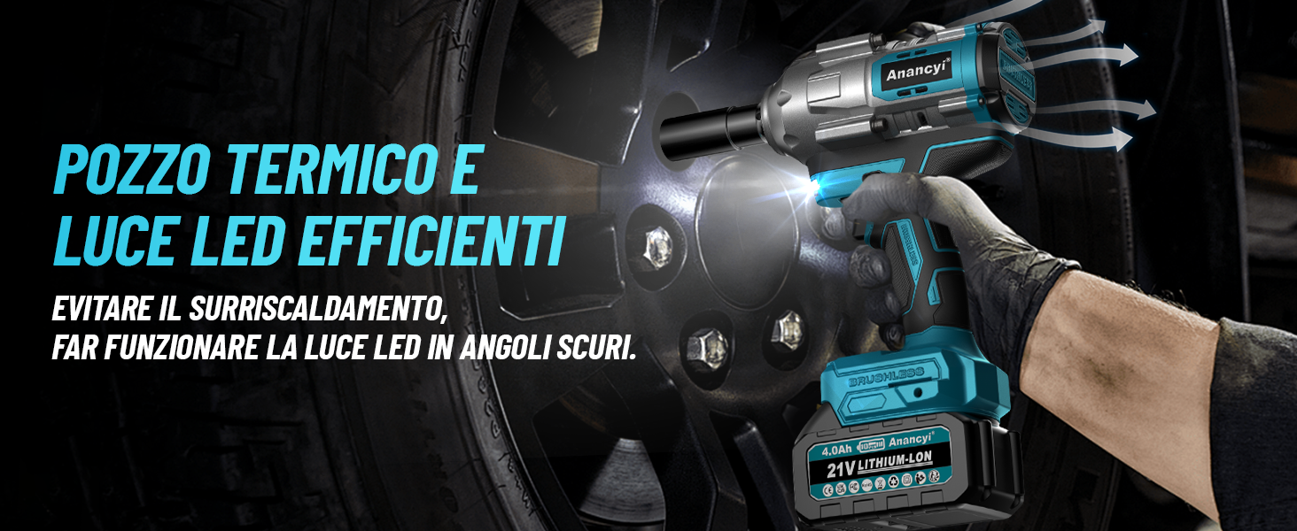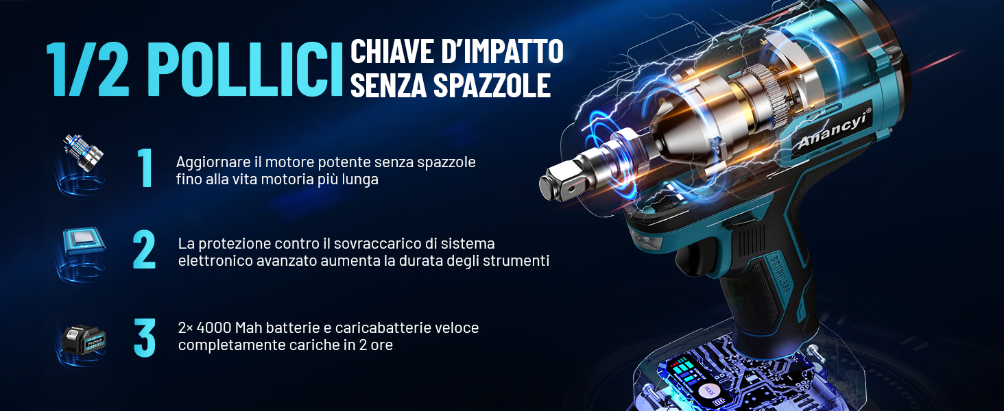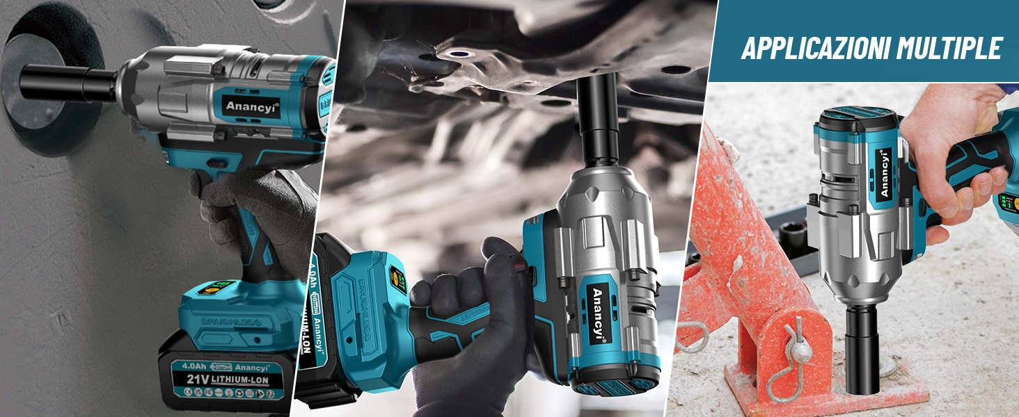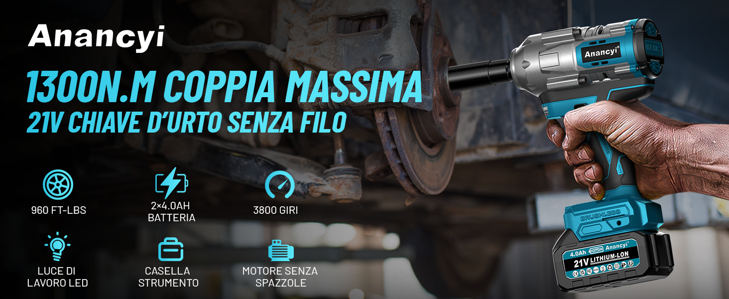 Anancyi Avvitatore a percussione a batteria, 1300 Nm, coppia regolabile per camion, 1/2 pollici, motore senza spazzole, 2 x 4,0 Ah, 6 bussole (17/19/21/22/24 mm, asta di prolunga da 5 pollici) : Amazon.it: Fai da te