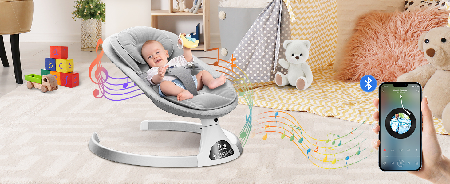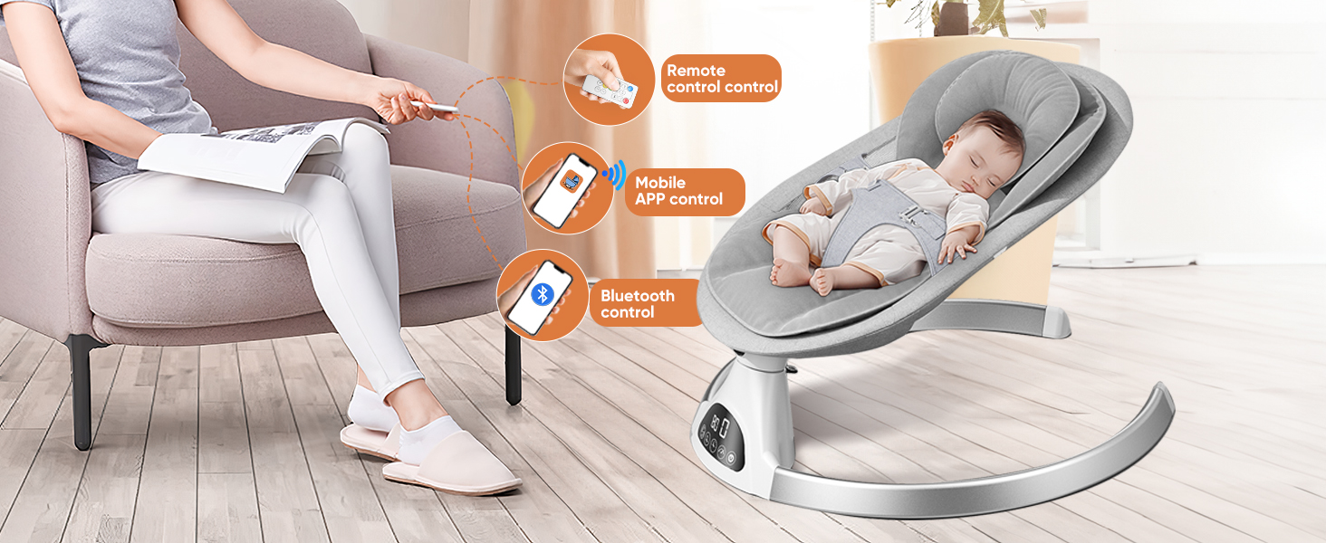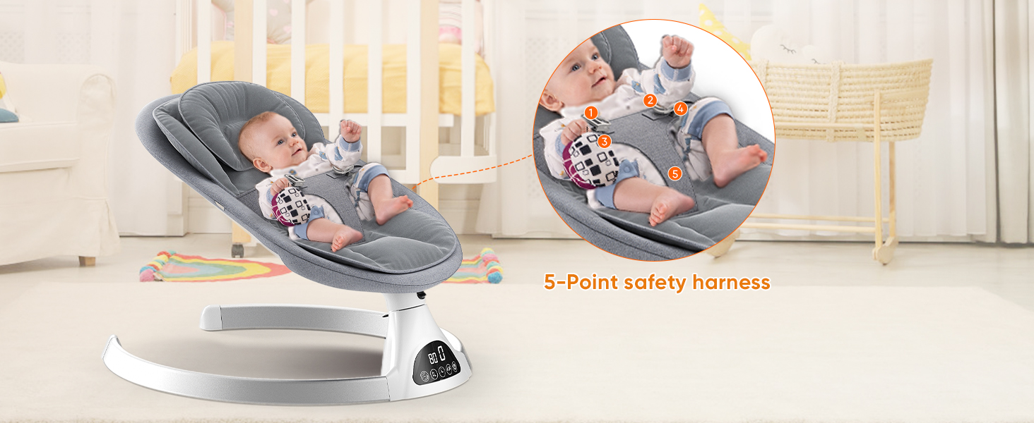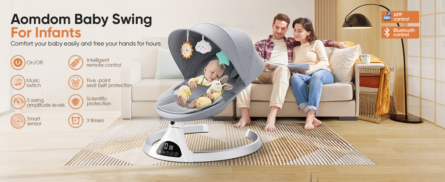 Aomdom altalena elettrica per bambini, sdraietta per bambini fino a 9 kg di peso, con telecomando e wireless per lo stile di controllo APP, altalena per bambini con imbracatura di sicurezza a 5 punti : Prima infanzia