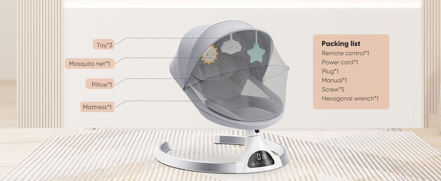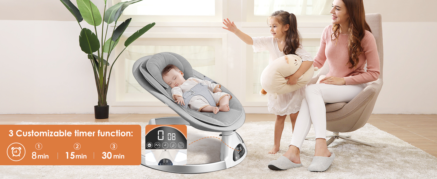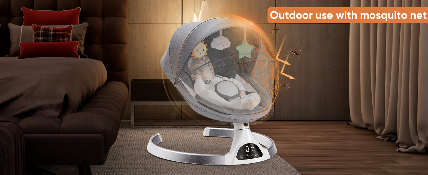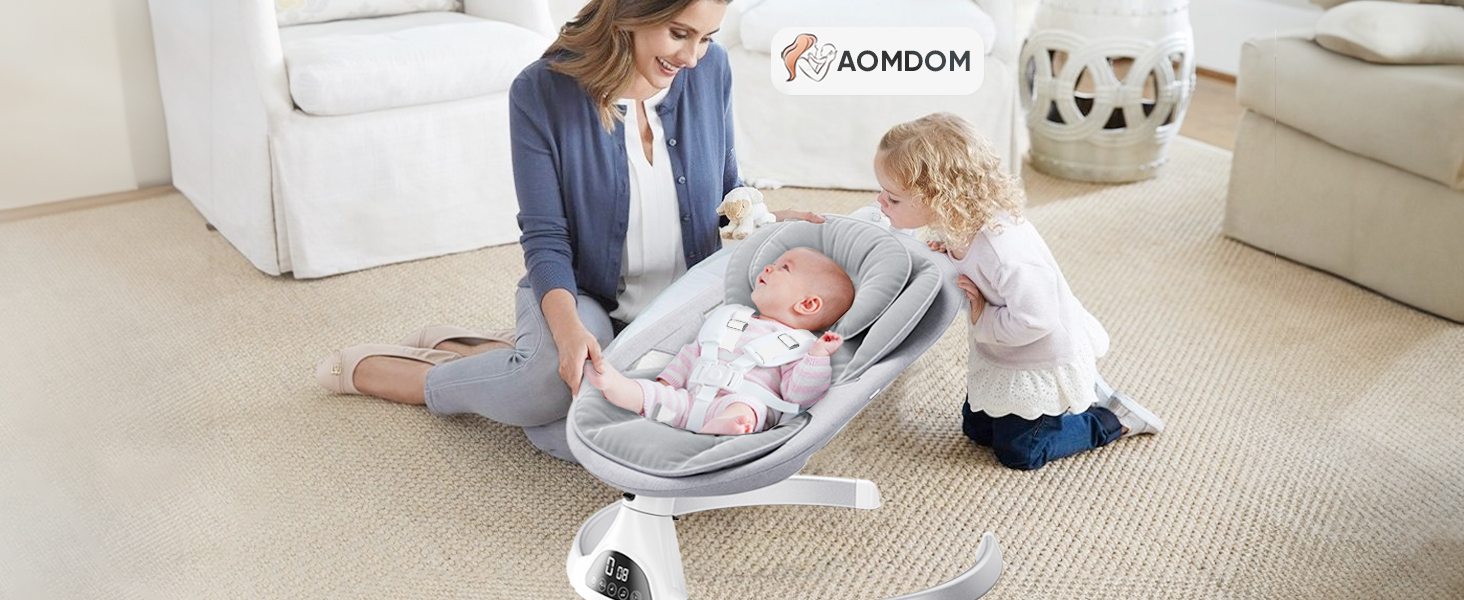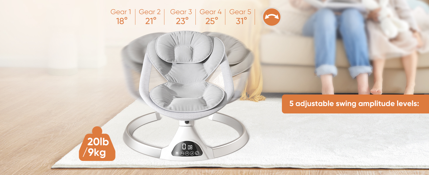 Aomdom altalena elettrica per bambini, sdraietta per bambini fino a 9 kg di peso, con telecomando e wireless per lo stile di controllo APP, altalena per bambini con imbracatura di sicurezza a 5 punti : Prima infanzia