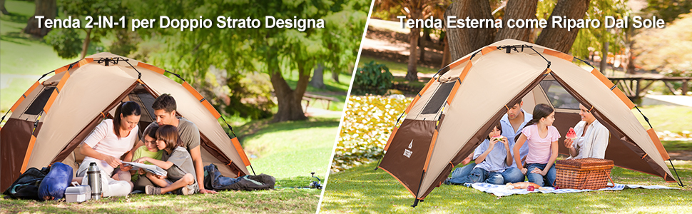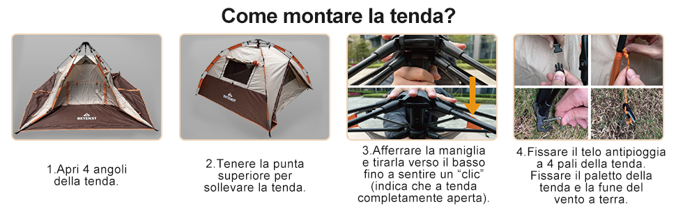 BETENST Tenda da Campeggio, Tenda Pop Up 3 Persone Famiglia Tenda a Cupola Impermeabile Antivento con 2 Porte a Rete, 2 Finestre a Rete, 2 in 1 Doppi Strati per Campeggio Escursioni Zaino in Spalla : Amazon.it: Sport e tempo libero