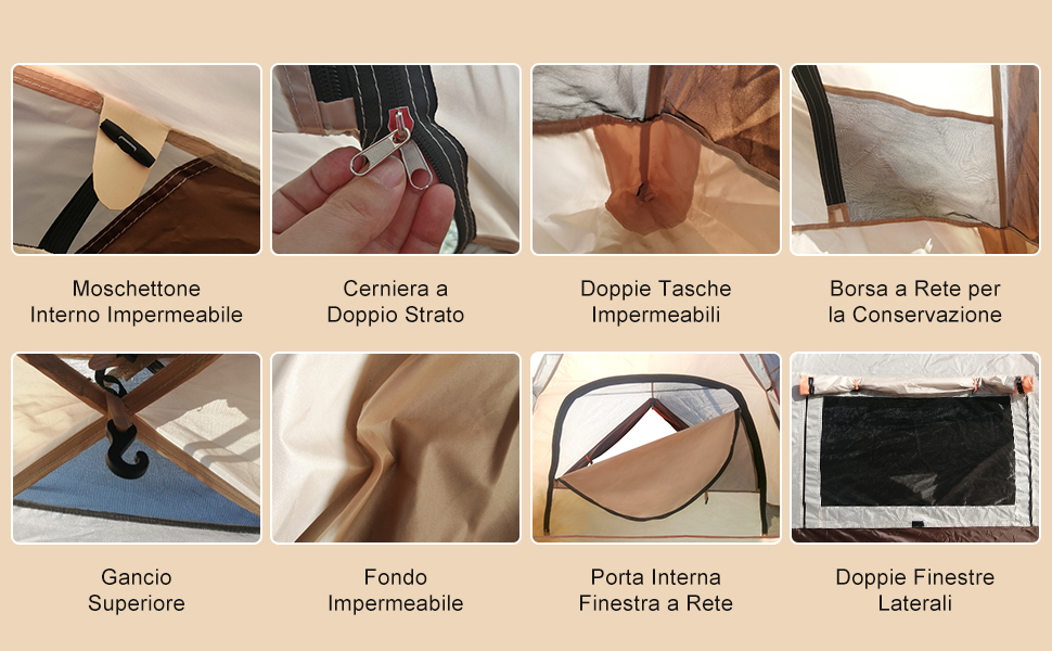 Informazioni su questo articolo 【Tenda Familiare per 3 Persone】 La tenda da campeggio BETENST è la tenda familiare perfetta che hai mai visto. Interni spaziosi: 210 x 210 cm, altezza centrale: 110 cm. La tenda pop-up si adatta a 2-3 persone in sacco a pelo o 2-3 persone con molti attrezzi da campeggio, questo ti dà la sensazione di vivere nella tua stanza a casa e offre lo stesso comfort. 【Visibilità e ventilazione】2 Grandi porte a rete, 2 finestre a rete e la parte superiore della tenda a rete creano una ventilazione a “effetto camino”, facendo respirare l'aria fresca e aiutando a controllare la condensa. L'accesso con cerniera consente ai campeggiatori di regolare le prese d'aria dall'interno della tenda. Le porte e le pannellature in rete a prova di insetti offrono un'ottima visuale e ventilazione. 【Tenda multifunzionale 2-IN-1】 La tenda a cupola istantanea a due strati comprende una tenda esterna e una interna staccabili e può essere utilizzata per diversi scopi. Nel complesso, può essere utilizzata come tenda da campeggio antivento e antipioggia. Il telo esterno della tenda può essere utilizzato come parasole, telo esterno della tenda, gazebo, tenda da sole, tettoia, ecc. 【Tenda pop-up istantanea】 Questo sistema idraulico automatico consente alla tenda di aprirsi in pochi secondi. Una persona può facilmente montare la tenda in meno di 2 minuti. La borsa di trasporto è 32,28 x 6,69 x 6,69 pollici, è possibile ripristinare la tenda nella borsa di trasporto facilmente. Non c'è bisogno di perdere tempo in campeggio per montare le tende. Anche se piove all'improvviso, non c'è bisogno di essere agitati. 【Spazio di archiviazione pratico】BETENST Tenda da campeggio per famiglie con un vestibolo abbastanza grande per riporre bagagli, attrezzature e scarpe. Questa tenda pop-up è adatta per il campeggio casual, per il riposo in cortile, per i festival, per le attività ricreative all'aperto, per i boy/ girl scout, per lo zaino in spalla e per i raduni in spiaggia. › Visualizza altri dettagli prodotto Informazioni su questo articolo 【Tenda Familiare per 3 Persone】 La tenda da campeggio BETENST è la tenda familiare perfetta che hai mai visto. Interni spaziosi: 210 x 210 cm, altezza centrale: 110 cm. La tenda pop-up si adatta a 2-3 persone in sacco a pelo o 2-3 persone con molti attrezzi da campeggio, questo ti dà la sensazione di vivere nella tua stanza a casa e offre lo stesso comfort. 【Visibilità e ventilazione】2 Grandi porte a rete, 2 finestre a rete e la parte superiore della tenda a rete creano una ventilazione a “effetto camino”, facendo respirare l'aria fresca e aiutando a controllare la condensa. L'accesso con cerniera consente ai campeggiatori di regolare le prese d'aria dall'interno della tenda. Le porte e le pannellature in rete a prova di insetti offrono un'ottima visuale e ventilazione. 【Tenda multifunzionale 2-IN-1】 La tenda a cupola istantanea a due strati comprende una tenda esterna e una interna staccabili e può essere utilizzata per diversi scopi. Nel complesso, può essere utilizzata come tenda da campeggio antivento e antipioggia. Il telo esterno della tenda può essere utilizzato come parasole, telo esterno della tenda, gazebo, tenda da sole, tettoia, ecc. 【Tenda pop-up istantanea】 Questo sistema idraulico automatico consente alla tenda di aprirsi in pochi secondi. Una persona può facilmente montare la tenda in meno di 2 minuti. La borsa di trasporto è 32,28 x 6,69 x 6,69 pollici, è possibile ripristinare la tenda nella borsa di trasporto facilmente. Non c'è bisogno di perdere tempo in campeggio per montare le tende. Anche se piove all'improvviso, non c'è bisogno di essere agitati. 【Spazio di archiviazione pratico】BETENST Tenda da campeggio per famiglie con un vestibolo abbastanza grande per riporre bagagli, attrezzature e scarpe. Questa tenda pop-up è adatta per il campeggio casual, per il riposo in cortile, per i festival, per le attività ricreative all'aperto, per i boy/ girl scout, per lo zaino in spalla e per i raduni in spiaggia. › Visualizza altri dettagli prodotto Product details