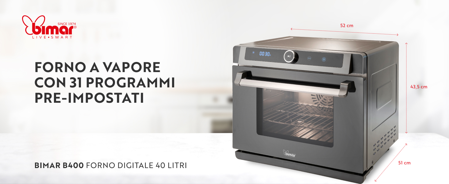 Bimar B400 Forno Elettrico Digitale a Vapore Ventilato da 40 litri in Acciaio Inox, Friggitrice ad Aria Calda XXL, Frittura senza Olio, Cuoce a Bassa Temperatura, Air Fryer, 31 Programmi di Cottura : Amazon.it: Casa e cucina