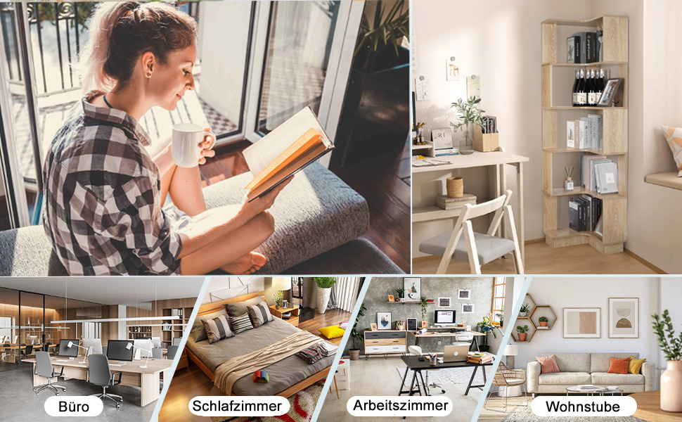 bimiti Libreria angolare a 6 strati, in legno, altezza 175 cm, grande scaffale angolare per soggiorno, casa, ufficio : Amazon.it: Casa e cucina