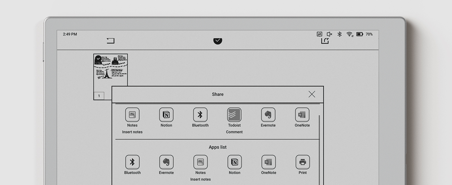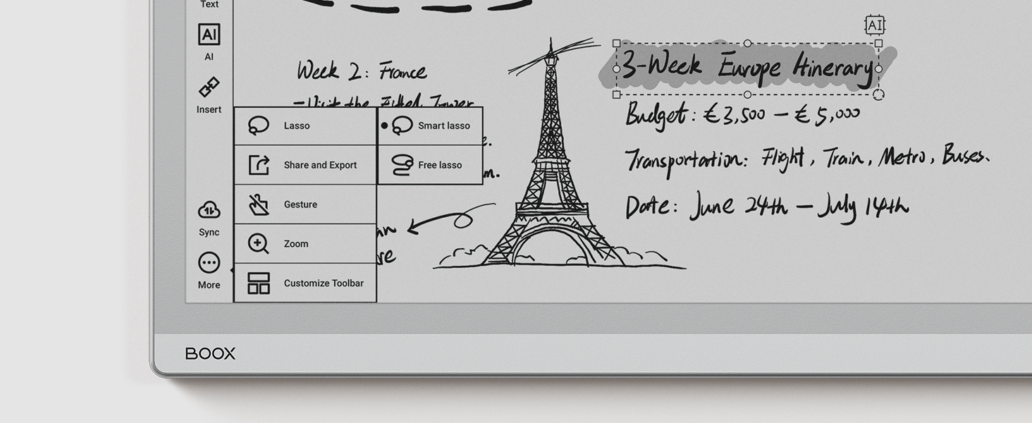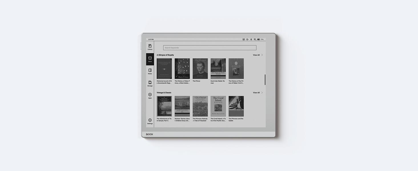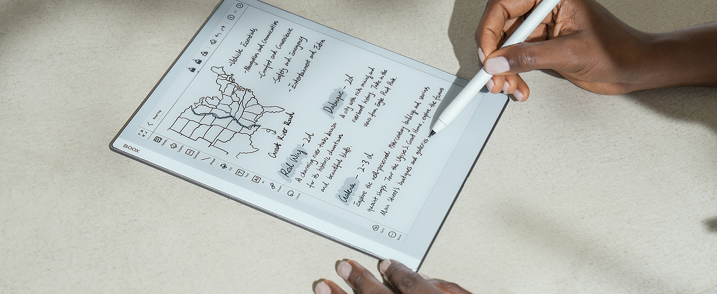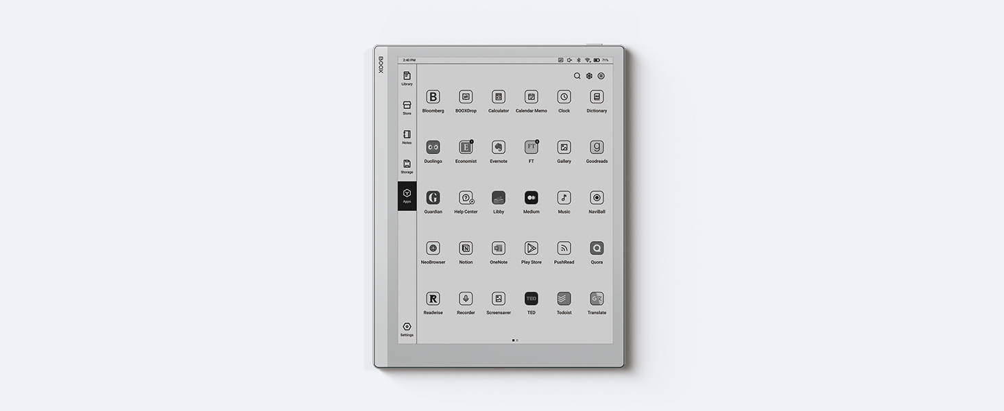 Marchio BOOX Nome modello Go 10.3 Capacità della memoria 64 GB Dimensioni schermo 10,3 Pollici Risoluzione massima del display 2480*1860 300PPI Pixel per pollice Sistema operativo Android 12 Dimensioni memoria RAM 4 GB Generazione 1ª generazione Durata batteria 1 Settimane Caratteristica speciale Schermo E Ink HD e funzione Smart Scribe per la lettura e la scrittura Product details
