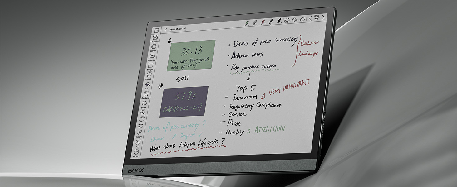 Marchio BOOX Nome modello TAB Ultra C pro Capacità della memoria 128 GB Dimensioni schermo 10,3 Pollici Risoluzione massima del display 2480 x 1860 Pixel Sistema operativo Android 12 Dimensioni memoria RAM 6 GB Durata batteria 2 Settimane Caratteristica speciale Altoparlanti stereo, Supporta USB OTG (On-The-Go), Memoria espandibile Anno modello 2023 Product details