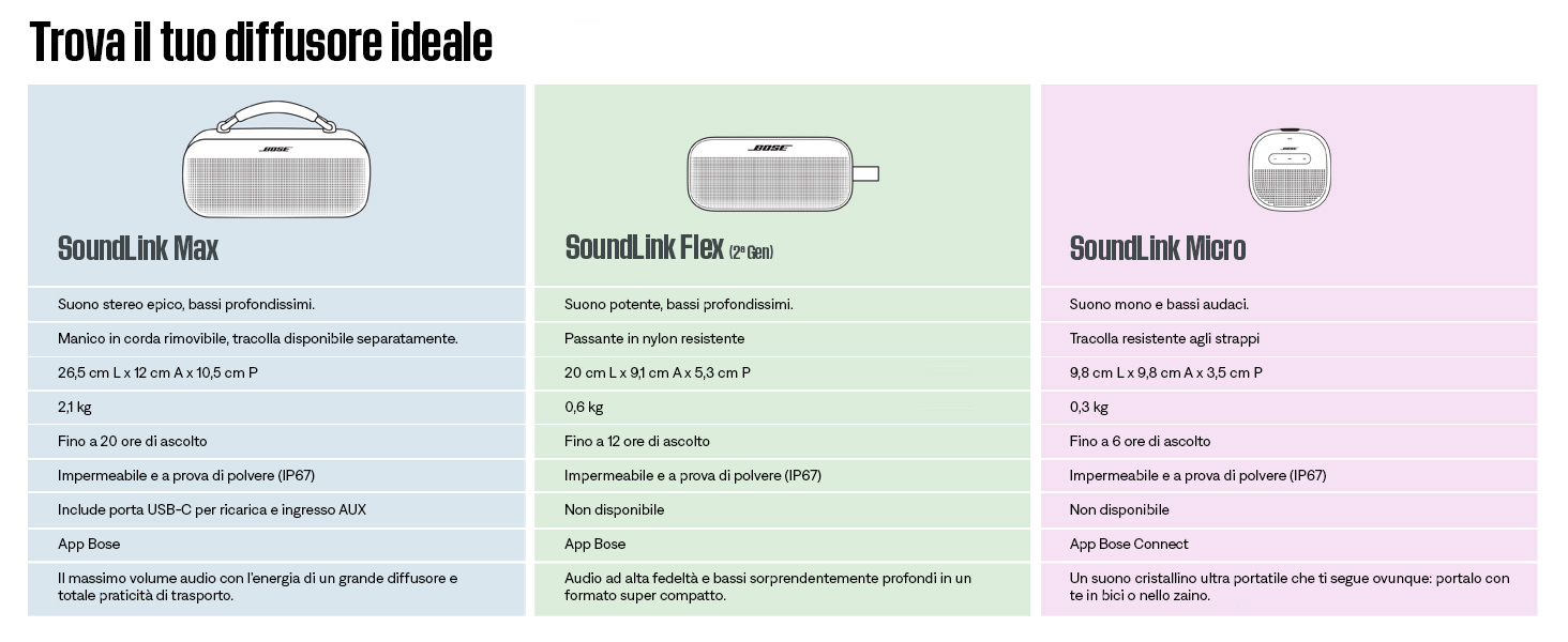 Marchio Bose Tecnologia di connettività Bluetooth Modalità uscita audio Stereo Tipo di montaggio Nessun supporto Materiale Plastica Nome modello Bose SoundLink Flex (2ª Gen) Diffusore Bluetooth portatile Tipo di altoparlante Esterno Caratteristica speciale Portatile, Impermeabile, Audio Hi-Res, A prova di polvere Dispositivi compatibili Computer fisso, Computer portatile, Tablet, Smartphone Conteggio unità 1.0 unità Product details