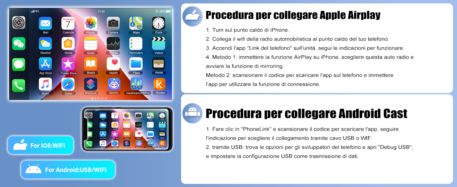 Informazioni su questo articolo 【Specifiche】 Autoradio doppio Din con touchscreen da 10,1 pollici, Android 13, 1GB RAM+32GB ROM. Autoradio per Opel Vivaro A 87R Renault Trafic II Nissan Primastar (2010,2011,2012,2013,2014).❗Nota: se il vostro veicolo è dotato di una scatola in fibra ottica/amplificatore originale, contattateci e acquistatelo. 【Autoradio con Navigatore GPS e WIFI】Navigazione GPS integrata, supporta la navigazione online e offline. Nota: per la navigazione offline, scaricare prima le mappe gratuite nell'app Here WeGo dopo la connessione a Internet. Connettetevi al WiFi per navigare in internet, guardare video e scaricare varie app online - sempre e ovunque. 【Autoradio Bluetooth e Radio FM/RDS】L'autoradio è dotata di microfono e altoparlante integrati per chiamate in vivavoce Bluetooth e riproduzione musicale Bluetooth. Supporta il sintonizzatore radio FM/RDS, per ascoltare il traffico in tempo reale, le notizie, le previsioni del tempo e altro ancora in qualsiasi momento e ovunque. 【Mirror Link e Telecamera Posteriore】Supporta Mirror Link per cellulari Android/Apple, è possibile proiettare lo schermo del cellulare sull'autoradio e condividere video, foto, musica, navigazione e altre funzioni del cellulare. Supporto della telecamera posteriore esterna, dopo il cablaggio, è possibile ottenere l'immagine posteriore HD quando si mette la macchina in marcia. 【Altre Funzioni】①Supporta il controllo originale del volante.②Supporta la funzione split screen, come la navigazione e la riproduzione di musica allo stesso tempo.③Supporta OBD2,DAB+, controllo vocale, subwoofer, ecc.(Nota: non incluso nella confezione.) › Visualizza altri dettagli prodotto Informazioni su questo articolo 【Specifiche】 Autoradio doppio Din con touchscreen da 10,1 pollici, Android 13, 1GB RAM+32GB ROM. Autoradio per Opel Vivaro A 87R Renault Trafic II Nissan Primastar (2010,2011,2012,2013,2014).❗Nota: se il vostro veicolo è dotato di una scatola in fibra ottica/amplificatore originale, contattateci e acquistatelo. 【Autoradio con Navigatore GPS e WIFI】Navigazione GPS integrata, supporta la navigazione online e offline. Nota: per la navigazione offline, scaricare prima le mappe gratuite nell'app Here WeGo dopo la connessione a Internet. Connettetevi al WiFi per navigare in internet, guardare video e scaricare varie app online - sempre e ovunque. 【Autoradio Bluetooth e Radio FM/RDS】L'autoradio è dotata di microfono e altoparlante integrati per chiamate in vivavoce Bluetooth e riproduzione musicale Bluetooth. Supporta il sintonizzatore radio FM/RDS, per ascoltare il traffico in tempo reale, le notizie, le previsioni del tempo e altro ancora in qualsiasi momento e ovunque. 【Mirror Link e Telecamera Posteriore】Supporta Mirror Link per cellulari Android/Apple, è possibile proiettare lo schermo del cellulare sull'autoradio e condividere video, foto, musica, navigazione e altre funzioni del cellulare. Supporto della telecamera posteriore esterna, dopo il cablaggio, è possibile ottenere l'immagine posteriore HD quando si mette la macchina in marcia. 【Altre Funzioni】①Supporta il controllo originale del volante.②Supporta la funzione split screen, come la navigazione e la riproduzione di musica allo stesso tempo.③Supporta OBD2,DAB+, controllo vocale, subwoofer, ecc.(Nota: non incluso nella confezione.) › Visualizza altri dettagli prodotto Product details