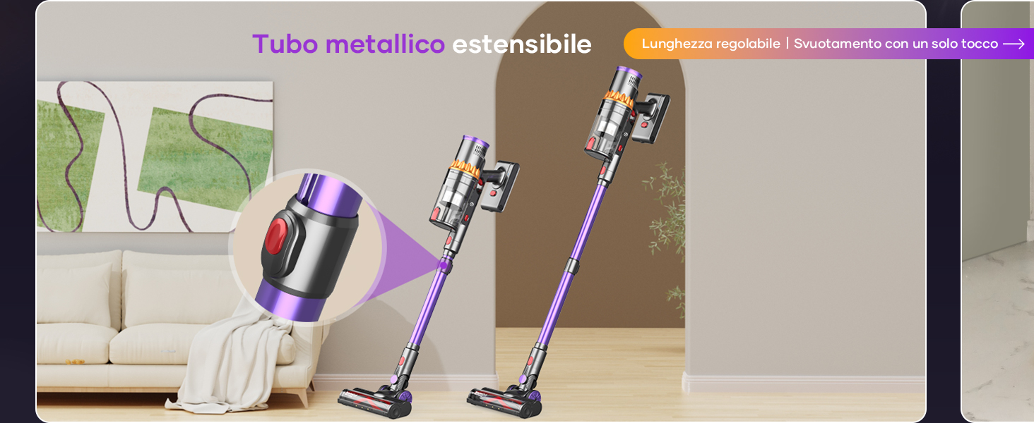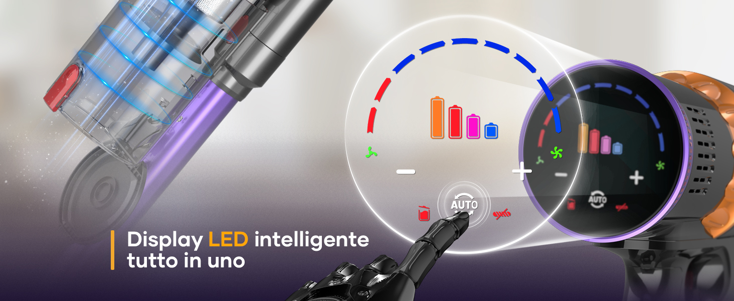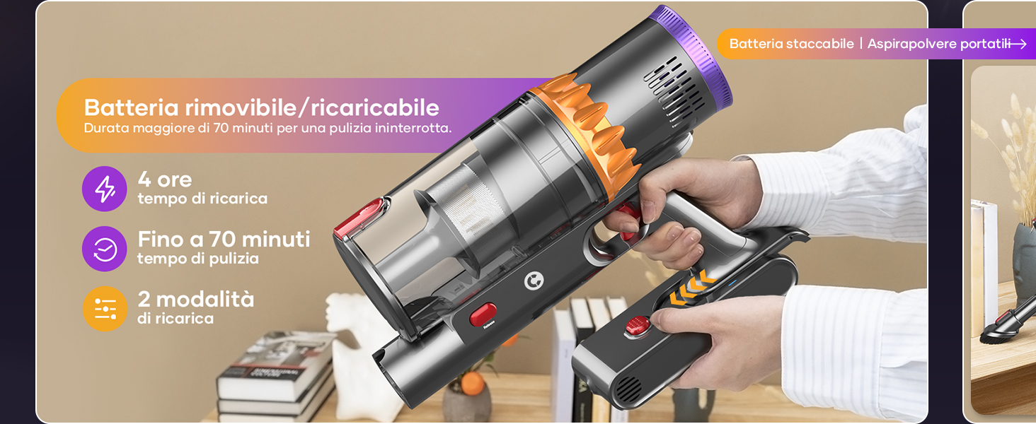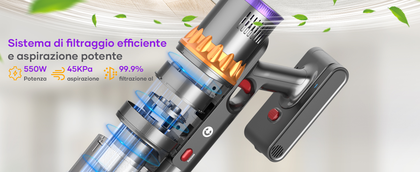Informazioni su questo articolo 【Motore Brushless da 550W e Potente Aspirazione di 45KPa】 CHEBIO aspirapolvere senza fili è dotato di un motore brushless da 550W, con una potenza di aspirazione ultra forte di 45KPa, che rimuove facilmente peli di animali, detriti e grandi particelle di polvere. Scopa elettrica senza fili mantiene la sua potenza di aspirazione su varie superfici, garantendo una pulizia approfondita anche in profondità nei tappeti. 【Modalità Sensore Intelligente Automatica】 Aspirapolvere senza fili è dotato di una modalità di aspirazione automatica intelligente che regola la potenza di aspirazione in base ai diversi materiali del pavimento e alle concentrazioni di polvere. In modalità di aspirazione automatica, aspirapolvere garantisce una pulizia efficiente riducendo il consumo energetico e prolungando la durata della batteria, offrendo un'esperienza di pulizia intelligente e completa. 【70Mins di Autonomia Estesa]】Aspirapolvere senza fili vanta un'eccellente durata della batteria, che può arrivare fino a 70 minuti nella modalità di aspirazione più bassa e 20 minuti nella modalità più alta, sufficienti per pulire uno spazio di 150 metri quadrati. La tecnologia della batteria efficiente non solo estende il tempo di utilizzo di aspirapolvere senza fili potente, ma garantisce anche una potenza di aspirazione stabile, rendendo il processo di pulizia più fluido e veloce. 【Touch Screen All-in-One & LED]】Aspirapolvere è dotato di un display LED ad alta precisione che mostra informazioni in tempo reale, come lo stato di funzionamento del dispositivo e il livello della batteria. Questo consente agli utenti di monitorare facilmente lo stato del dispositivo e comprendere intuitivamente il suo utilizzo, migliorando l'efficienza della pulizia. 【Spazzola a V, 99% Previene Efficacemente il Groviglio】 Aspirapolvere senza fili potente è dotato di un'avanzata spazzola a V che riduce al minimo i grovigli di capelli nella spazzola rotante, garantendo un processo di pulizia più fluido. Il design della spazzola rotante dell'scopa elettrica le consente di penetrare in profondità nelle fibre del tappeto, estraendo lo sporco incrostato e garantendo una pulizia completa. 【Filtrazione al 99,9% & Pattumiera da 1,5L】 CHEBIO scopa elettrica senza fili è dotato di un sistema di filtrazione HEPA ad alta efficienza che può filtrare il 99,9% della polvere e dei batteri. È equipaggiato con una grande pattumiera da 1,5L che accoglie più polvere e detriti, riducendo il fastidio di svuotamenti frequenti e rendendo il processo di pulizia più efficiente. 【Servizio Clienti Premium 24 Ore】 Il nostro team di assistenza clienti è dedicato a fornire supporto efficiente, professionale e amichevole. I clienti che acquistano l'aspirapolvere beneficiano di una garanzia di 2 anni e di un servizio clienti attivo 24 ore su 24, 7 giorni su 7. Inoltre, valorizziamo il feedback di ogni cliente e ottimizziamo continuamente i nostri servizi per migliorare l'esperienza complessiva. › Visualizza altri dettagli prodotto Informazioni su questo articolo 【Motore Brushless da 550W e Potente Aspirazione di 45KPa】 CHEBIO aspirapolvere senza fili è dotato di un motore brushless da 550W, con una potenza di aspirazione ultra forte di 45KPa, che rimuove facilmente peli di animali, detriti e grandi particelle di polvere. Scopa elettrica senza fili mantiene la sua potenza di aspirazione su varie superfici, garantendo una pulizia approfondita anche in profondità nei tappeti. 【Modalità Sensore Intelligente Automatica】 Aspirapolvere senza fili è dotato di una modalità di aspirazione automatica intelligente che regola la potenza di aspirazione in base ai diversi materiali del pavimento e alle concentrazioni di polvere. In modalità di aspirazione automatica, aspirapolvere garantisce una pulizia efficiente riducendo il consumo energetico e prolungando la durata della batteria, offrendo un'esperienza di pulizia intelligente e completa. 【70Mins di Autonomia Estesa]】Aspirapolvere senza fili vanta un'eccellente durata della batteria, che può arrivare fino a 70 minuti nella modalità di aspirazione più bassa e 20 minuti nella modalità più alta, sufficienti per pulire uno spazio di 150 metri quadrati. La tecnologia della batteria efficiente non solo estende il tempo di utilizzo di aspirapolvere senza fili potente, ma garantisce anche una potenza di aspirazione stabile, rendendo il processo di pulizia più fluido e veloce. 【Touch Screen All-in-One & LED]】Aspirapolvere è dotato di un display LED ad alta precisione che mostra informazioni in tempo reale, come lo stato di funzionamento del dispositivo e il livello della batteria. Questo consente agli utenti di monitorare facilmente lo stato del dispositivo e comprendere intuitivamente il suo utilizzo, migliorando l'efficienza della pulizia. 【Spazzola a V, 99% Previene Efficacemente il Groviglio】 Aspirapolvere senza fili potente è dotato di un'avanzata spazzola a V che riduce al minimo i grovigli di capelli nella spazzola rotante, garantendo un processo di pulizia più fluido. Il design della spazzola rotante dell'scopa elettrica le consente di penetrare in profondità nelle fibre del tappeto, estraendo lo sporco incrostato e garantendo una pulizia completa. 【Filtrazione al 99,9% & Pattumiera da 1,5L】 CHEBIO scopa elettrica senza fili è dotato di un sistema di filtrazione HEPA ad alta efficienza che può filtrare il 99,9% della polvere e dei batteri. È equipaggiato con una grande pattumiera da 1,5L che accoglie più polvere e detriti, riducendo il fastidio di svuotamenti frequenti e rendendo il processo di pulizia più efficiente. 【Servizio Clienti Premium 24 Ore】 Il nostro team di assistenza clienti è dedicato a fornire supporto efficiente, professionale e amichevole. I clienti che acquistano l'aspirapolvere beneficiano di una garanzia di 2 anni e di un servizio clienti attivo 24 ore su 24, 7 giorni su 7. Inoltre, v