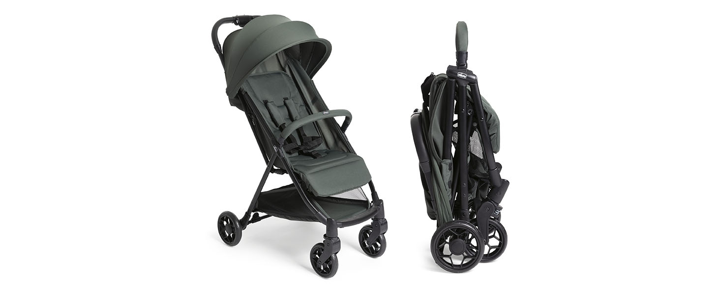 Chicco Urbino, Passeggino 0 Mesi 22 Kg, Passeggino Leggero con Chiusura Smart e Compatta, Capotte Estensibile con Trattamenti UV50 Antipioggia, Schienale Reclinabile e Regolabile, Poggiagambe, Verde : Prima infanzia