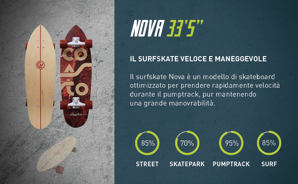 COASTO, Surfskate Coast Nova 33.5 "Coast, Sports and Leisure, Sports, Urban Sliding, Skateboarding, Skateboards e Caster Boards, Skateboards, SK Cnova33 : Sport e tempo libero
