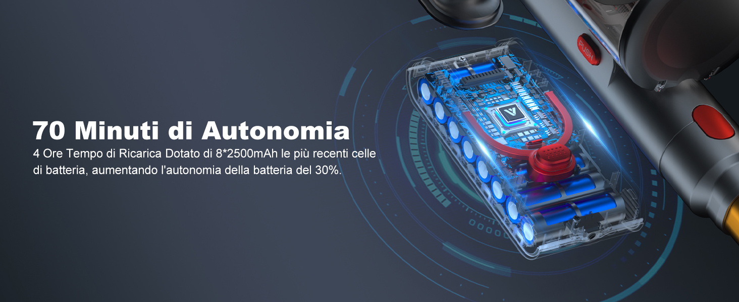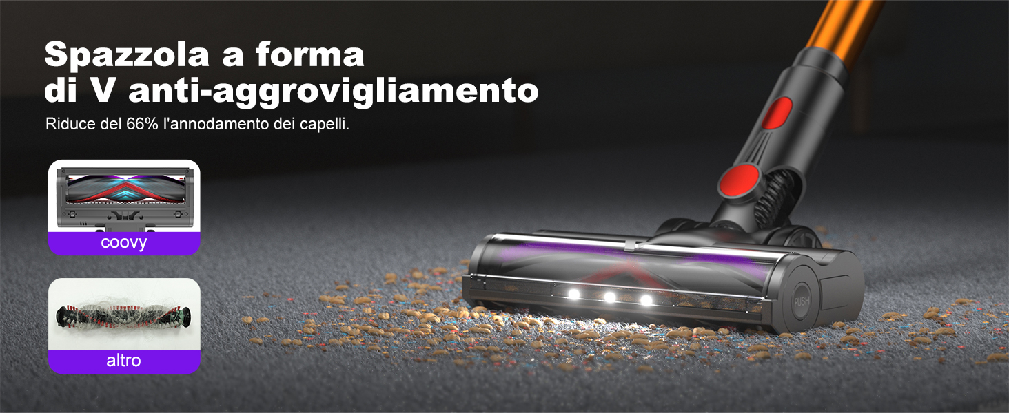 coovy 580W/45000Pa Aspirapolvere senza Fili SU7, Scopa Elettrica senza Filo Potente 70 Min Autonomia con LED Touchscreen Anti Avvolgimento per Tappeti Pavimento Peli Animali : Amazon.it: Casa e cucina