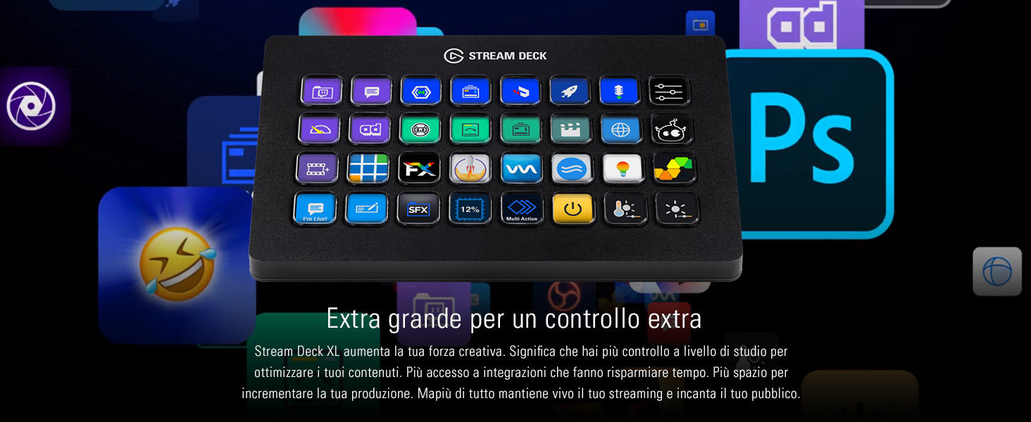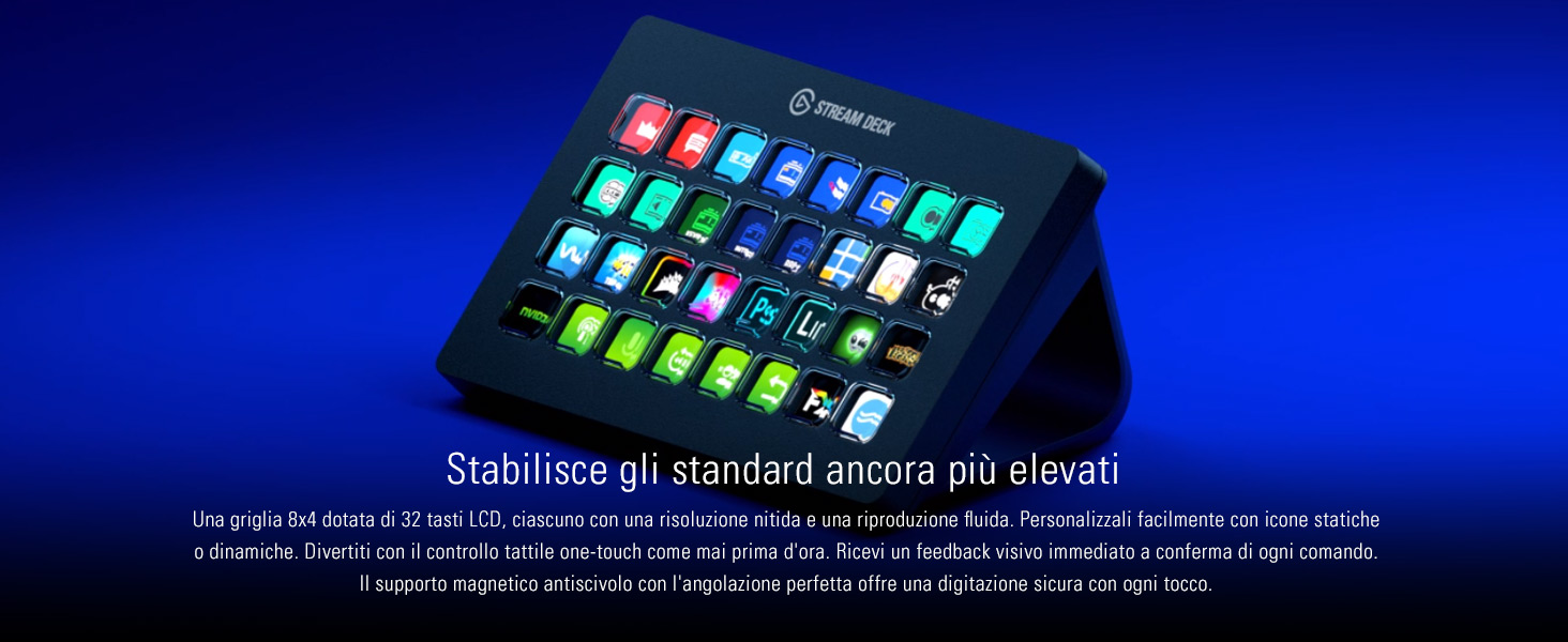 Marchio Elgato Tecnologia di connettività USB Caratteristica speciale 32 tasti LCD personalizzabili Risoluzione 8k Servizi Internet supportati Spotify, YouTube Tipo di controller Controllo tramite pulsante Fattore di forma TV Box Colore Nero Nome modello Stream Deck XL Peso articolo 410 Grammi Product details