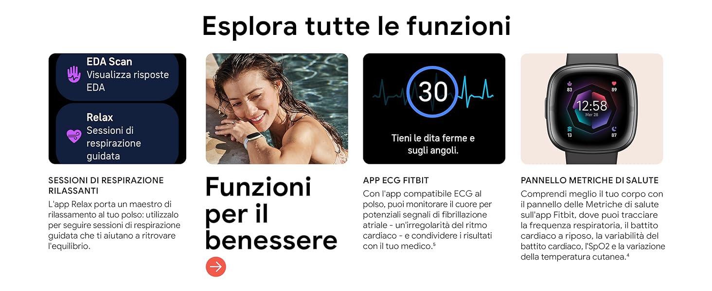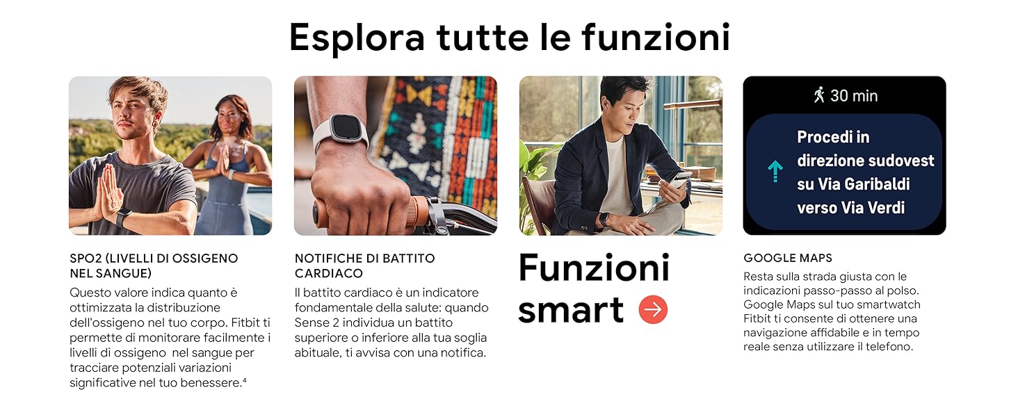 Sistema operativo IOS13+; Android 8+ Capacità della memoria 6400 MB Caratteristica speciale (function(f) {var _np=(window.P._namespace("DetailPageProductOverviewTemplatesJava"));if(_np.guardFatal){_np.guardFatal(f)(_np);}else{f(_np);}}(function(P) { P.when('A').execute(function(A){ A.on('a:truncate:po-attribute-truncate-2:updated', function(data) { var isTruncated = !data.truncateInstance.getIfTextFits(); var seeMoreElement = document.getElementById('po-attribute-see-more-id-2'); if(seeMoreElement) { seeMoreElement.style.display = isTruncated ? '' : 'none'; } }) });})); Cardiofrequenzimetro, GPS, monitoraggio dello stress, resistente all'acqua, ossimetro (SpO2), monitoraggio del sonno, Activity Tracker, Notifiche, Pagamento senza contatto Mostra altro Tecnologia di connettività GPS Standard di comunicazione wireless Bluetooth Composizione delle celle delle batterie Ioni di litio GPS GPS integrato Forma Quadrato Dimensioni schermo 1,34 Pollici Marchio Fitbit Product details
