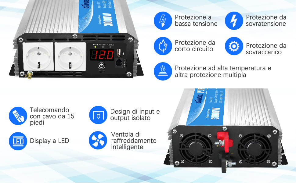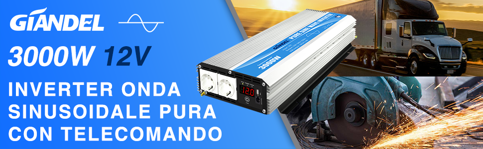 GIANDEL Inverter a onda sinusoidale pura 3000W Convertitore DC 12V a AC 220V 230V con telecomandoler prese AC doppie&Display a LED per uso home di camion RV : Amazon.it: Elettronica