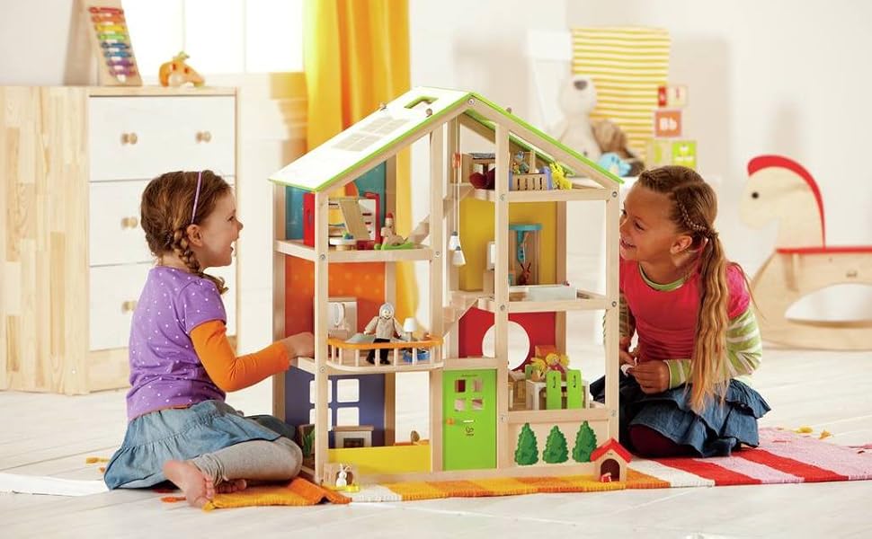 • Hape All Season House (Furnished), Award Winning 3 Storey Dolls House Toy with Furniture, Accessories, Movable Stairs and Reversible Season Theme : Giochi e giocattoli