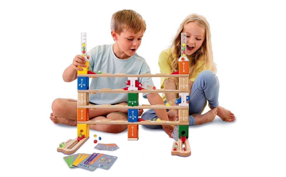 Hape Quadrilla Set codifica di base | Pista per biglie in legno di ultima generazione per imparare il Coding giocando dai 6 anni in su : Giochi e giocattoli