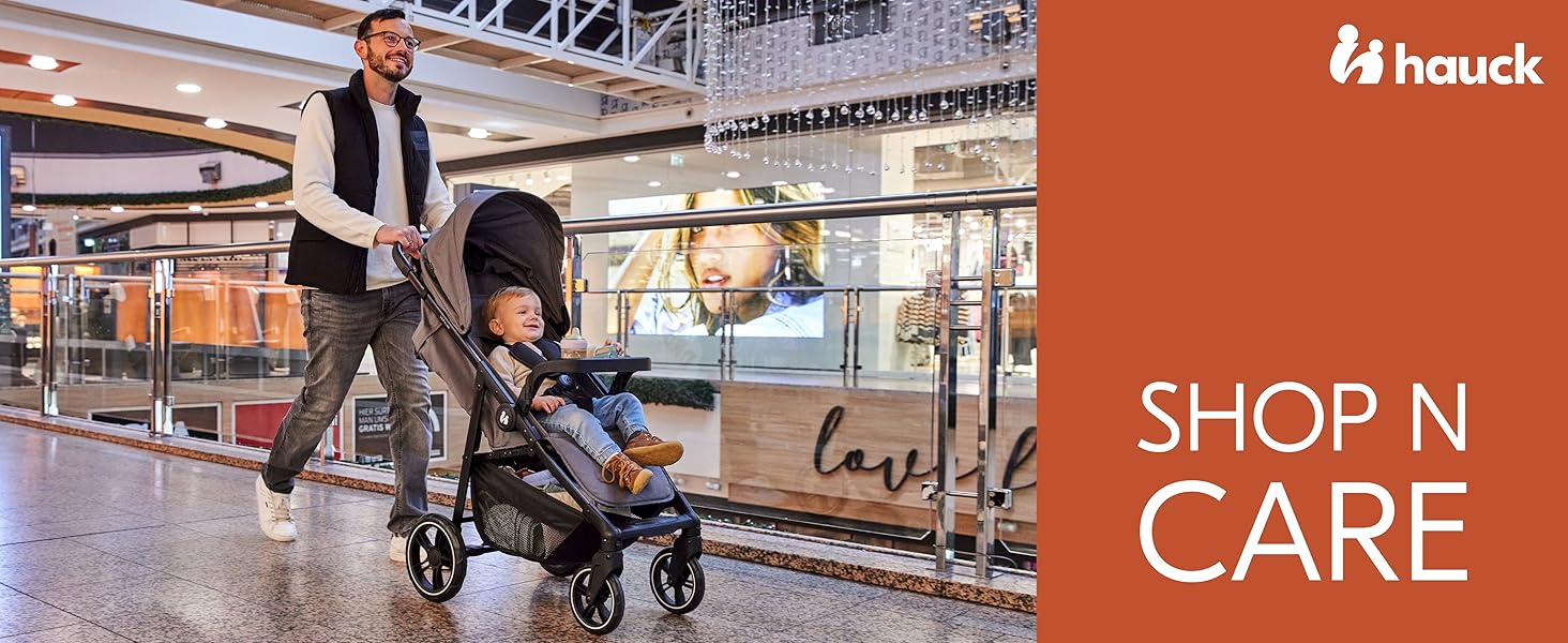 Il passeggino perfetto per la città Anti-foratura e maneggevole Prendi l'autobus per andare in città? O vai al parco? Grazie alle grandi ruote anteriori, girevoli e bloccabili, il Shop N Care ti rende tutto più facile. E le ruote con cerchi riflettenti sono anti-foratura. Sei da solo con il tuo bambino e hai una sola mano libera? Puoi piegare il Shop N Care con una sola mano. Il passeggino rimane in piedi da solo e pesa solo 8,5 kg, quindi è particolarmente leggero. Regolabile in modo versatile e sempre comodo Attivo o stanco - l'importante è essere comodi! Che sia seduto o sdraiato, il passeggino Shop N Care ha sempre la posizione giusta. Lo schienale e il poggiapiedi sono facilmente regolabili. Vuoi usare il passeggino come carrozzina? Collega il tuo seggiolino auto per neonati al passeggino tramite l'adattatore! Il Shop N Care è compatibile con il seggiolino auto hauck Drive N Care e molti altri seggiolini auto! Un vero talento organizzativo Il tuo bambino ama fare uno spuntino nel passeggino? Proprio per questo il Shop N Care ha un vassoio e un portabicchieri. E grazie alla barra di sicurezza girevole, il tuo bambino può salire e scendere facilmente. Giochi, borsa per il cambio, provviste: anche per una piccola gita c'è tanto da portare. Oppure vuoi fare un rapido acquisto? Nel cestino XL sotto il sedile c'è spazio per tutto ciò che devi portare con te.