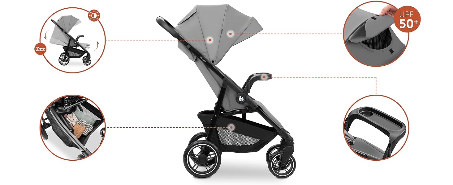 hauck Passeggino Leggero Shop N Care Passeggino Compatto fino a 22Kg, Reclinabile, Passeggino da Viaggio con Portabicchieri e Vassoio Cappotta Parasole (UPF 50 ) e Cesto XL (Fino a 3kg), Dusty Blu : Prima infanzia