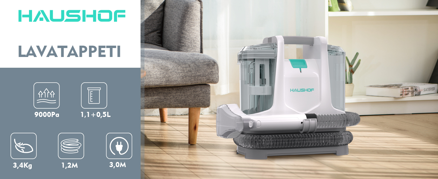HAUSHOF StainZapper Lavatappeti Portatile 400W, lava divano ad Acqua, lava tappezzeria, Ideale per Pulisci Scale, divano, Sedili Auto, Moquette e Tappeti, lava divani e aspira acqua : Amazon.it: Casa e cucina