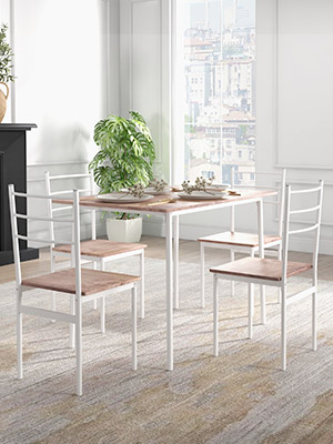 HOMCOM Set da pranzo, tavolo da pranzo con 4 sedie da cucina, salva spazio, set da pranzo, set da pranzo per cucina, in acciaio, marrone : Casa e cucina