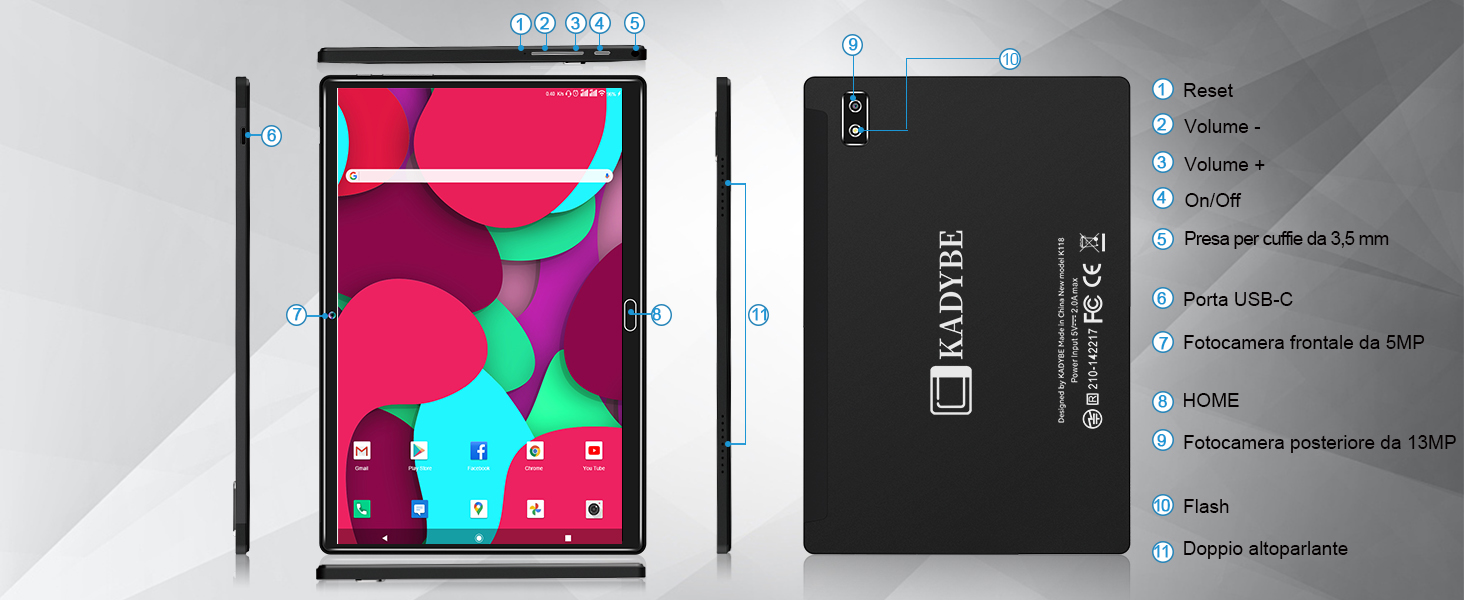 Marchio KADYBE Nome modello D118C Capacità della memoria 64 GB Dimensioni schermo 10 Pollici Risoluzione massima del display 1280*800 Pixel Sistema operativo Android 13 Colore Grigio Dimensioni memoria RAM 4 GB Anno modello 2024 Tecnologia di comunicazione wireless Bluetooth, Wi-Fi Product details