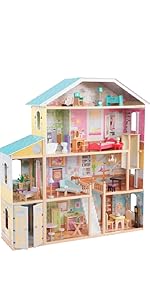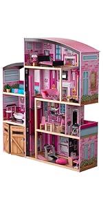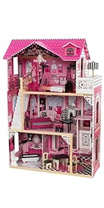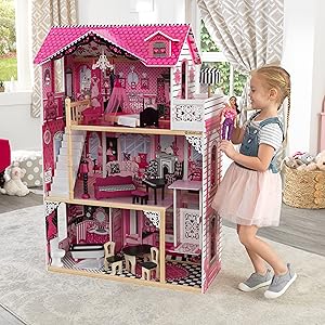 KidKraft Casa delle Bambole in Legno Amelia con Accessori e Mobili inclusi, Casa a 3 Livelli di Gioco con Ascensore per Bambole di 30 cm, Giocattolo per Bambini 3 Anni, 65093 : Amazon.it: Giochi e giocattoli