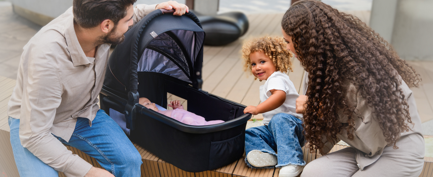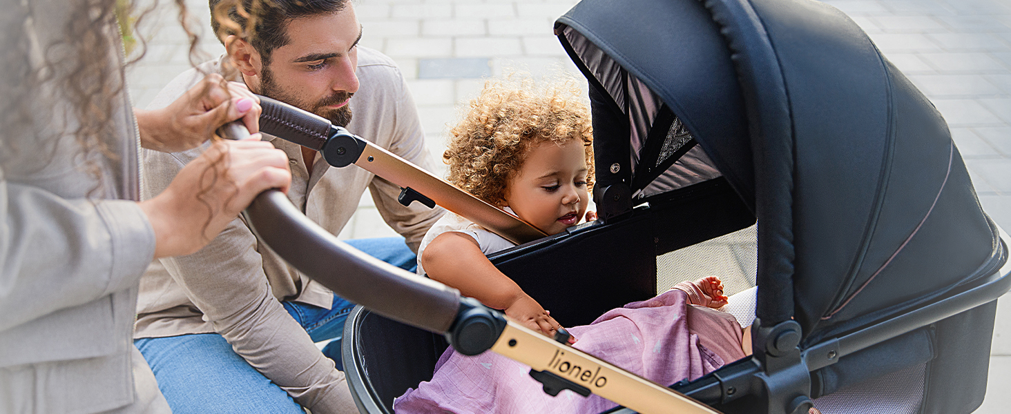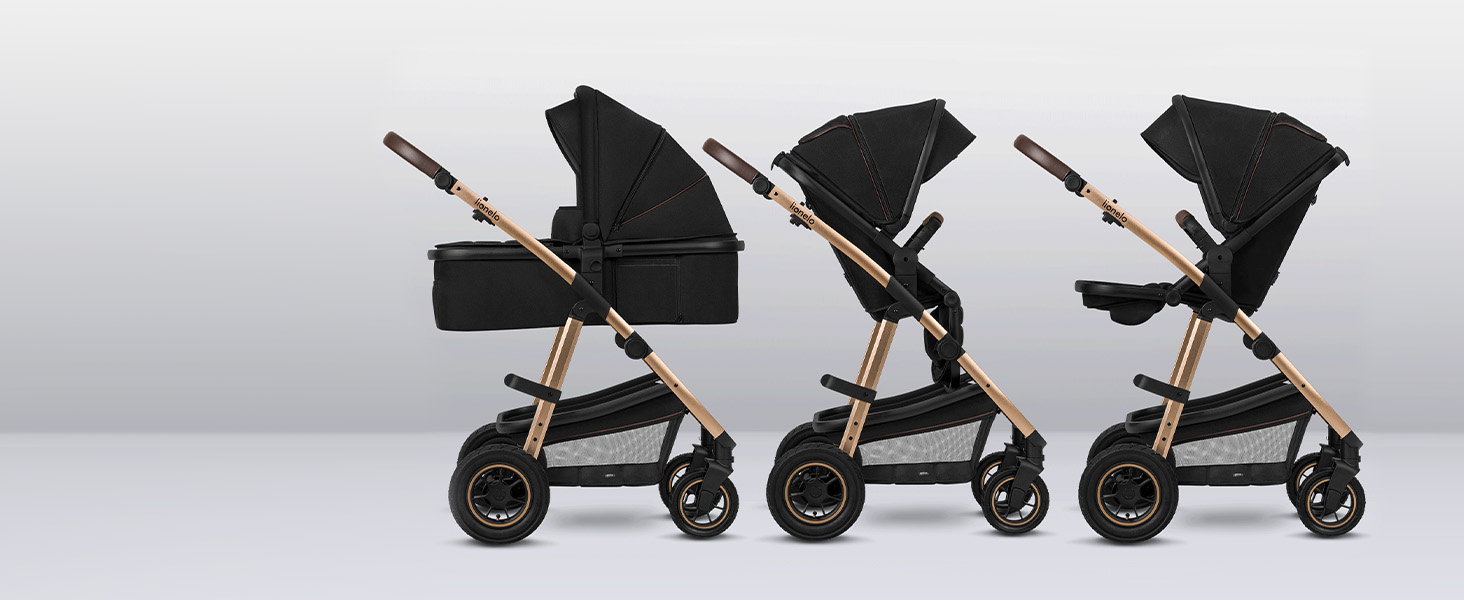 LIONELO Amber Passeggino 2in1 Duo Passeggino da 0 a 48mesi con Seduta secchiello Navicella per neonato e bambini a 22kg Regolabile, pieghevole e leggero Ruote grandi Cappotina XXL : Prima infanzia