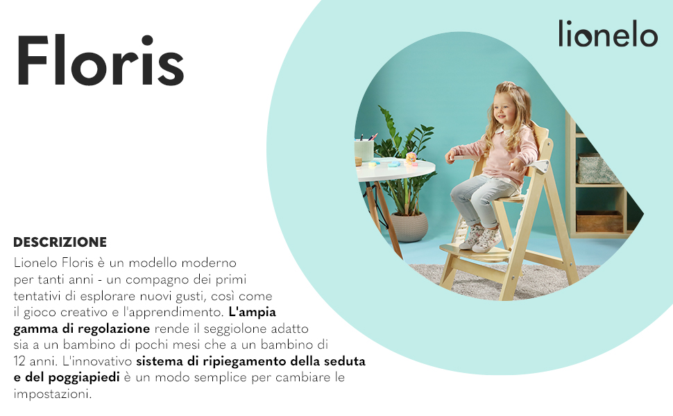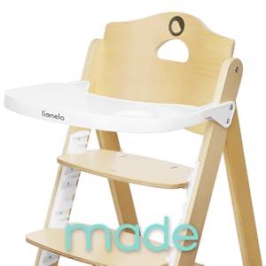LIONELO Floris Seggiolone pappa da 6 mesi fino a 12 anni o 40 kg Sedia 3in1 dall'infanzia all'adolescenza, Costruzione in legno Regolazione in altezza del sedile e del poggiapiedi, Vassoio rimovibile : Prima infanzia