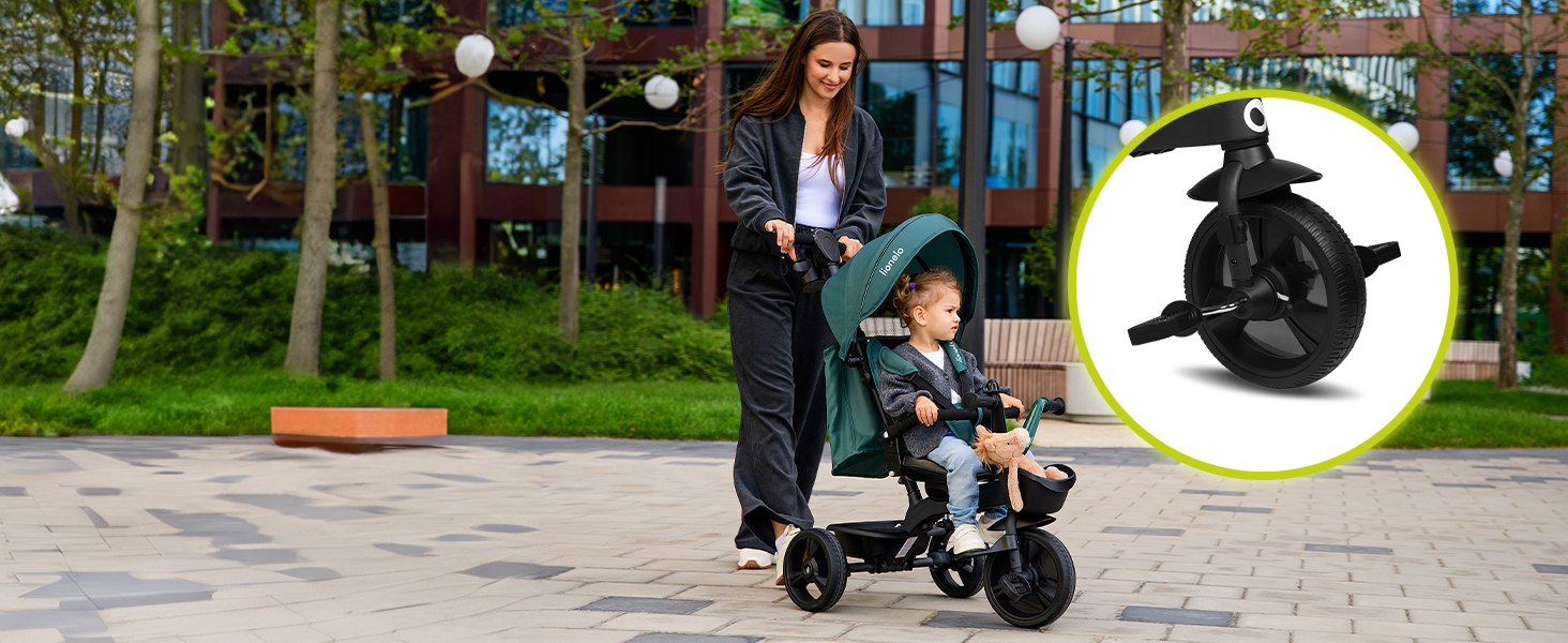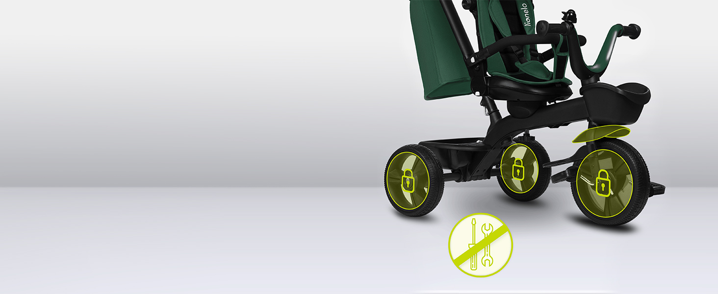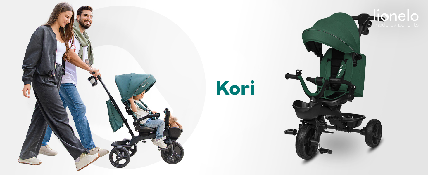 LIONELO Kori Triciclo Evolutivo per Bambini da 1.5 Anni fino a 25 kg Sedile Girevole 360° Telaio ultraleggero in lega di magnesio, Pneumatici resistenti, Maniglione per genitori e Accessori : Giochi e giocattoli