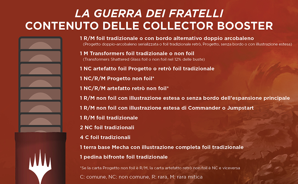 Informazioni su questo articolo 12 Collector Booster di MTG - La Guerra dei Fratelli (180 carte di Magic) 15 carte di Magic e 1 pedina foil in ogni busta Le uniche buste che possono includere le carte Transformers con illustrazione alternativa Shattered Glass Le uniche buste che possono includere le carte Progetto serializzate con trattamento foil speciale 1 carta Transformers foil o non foil rara mitica in ogni busta e 5 altre carte di rarità rara o superiore Scorciatoia per le carte più preziose de la Guerra dei Fratelli Viaggia indietro nel tempo per comandare potenti artefatti e robot giganti › Visualizza altri dettagli prodotto Informazioni su questo articolo 12 Collector Booster di MTG - La Guerra dei Fratelli (180 carte di Magic) 15 carte di Magic e 1 pedina foil in ogni busta Le uniche buste che possono includere le carte Transformers con illustrazione alternativa Shattered Glass Le uniche buste che possono includere le carte Progetto serializzate con trattamento foil speciale 1 carta Transformers foil o non foil rara mitica in ogni busta e 5 altre carte di rarità rara o superiore Scorciatoia per le carte più preziose de la Guerra dei Fratelli Viaggia indietro nel tempo per comandare potenti artefatti e robot giganti › Visualizza altri dettagli prodotto Product details