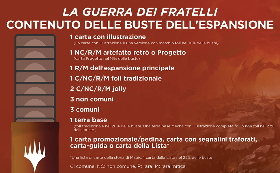 Informazioni su questo articolo 30 buste dell’espansione de La Guerra dei Fratelli (360 carte di Magic) 12 carte di Magic: The Gathering in ogni busta Almeno 1 carta artefatto con bordo retrò in ogni busta 1 carta Transformers nel 10% delle buste 1-5 carte di rarità rara o superiore e almeno 1 carta foil tradizionale in ogni busta Le buste MTG migliori da aprire per divertirsi Viaggia indietro nel tempo per comandare potenti artefatti e robot giganti › Visualizza altri dettagli prodotto Informazioni su questo articolo 30 buste dell’espansione de La Guerra dei Fratelli (360 carte di Magic) 12 carte di Magic: The Gathering in ogni busta Almeno 1 carta artefatto con bordo retrò in ogni busta 1 carta Transformers nel 10% delle buste 1-5 carte di rarità rara o superiore e almeno 1 carta foil tradizionale in ogni busta Le buste MTG migliori da aprire per divertirsi Viaggia indietro nel tempo per comandare potenti artefatti e robot giganti › Visualizza altri dettagli prodotto Product details