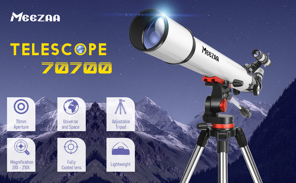 MEEZAA Telescopio, Telescopio Astronomico Professionale Adulti, 70/700mm AZ Telescopio Rifrattore per Bambini e Principianti, Telescopio portatile e potente 28x 210x con Treppiede, Adattatore Telefono : Elettronica