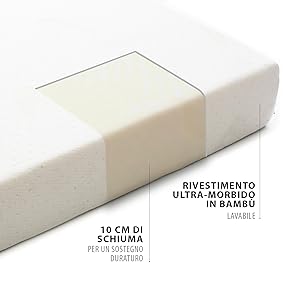 Informazioni su questo articolo Il Materasso Pieghevole in Tre in Schiuma di Milliard permette di dormire comodamente ovunque andiate. Basta stendere il letto in schiuma sul pavimento in qualsiasi stanza, roulotte o tenda per un sonno confortevole. Questo letto si adatta facilmente a tutte le esigenze per poi essere ripiegato ordinatamente in pochi secondi per essere messo via. La schiuma è nota per sue le qualità terapeutiche e il sostegno confortevole. Il materasso pieghevole in tre di Milliard è ventilato e garantisce un flusso d'aria che aiuta a regolare la temperatura durante il sonno per il massimo sostegno e comfort. Il Materasso Pieghevole in Tre in Schiuma di Milliard è la soluzione ideale per i posti letto temporanei. Sostituite il materasso ad aria e utilizzatelo come letto da campeggio, letto per gli ospiti o letto da dormitorio. Viene costruito il materasso di tri-fold miliardi di 10cm 35kg lussuoso CertiPUR-US certificata schiuma per un'esperienza di grande sonno. La nostra gomma piuma sostituisce tutte con costruzione superiore ad alta densità che non perderà la sua forma. Materasso include sfoderabile ultra-morbido jacquard con fondo antiscivolo. Materasso misura 90 cm larghezza x 190 cm lungo x cm spessore 10 cm. Chiuso misura 90x64x30cm. › Visualizza altri dettagli prodotto Informazioni su questo articolo Il Materasso Pieghevole in Tre in Schiuma di Milliard permette di dormire comodamente ovunque andiate. Basta stendere il letto in schiuma sul pavimento in qualsiasi stanza, roulotte o tenda per un sonno confortevole. Questo letto si adatta facilmente a tutte le esigenze per poi essere ripiegato ordinatamente in pochi secondi per essere messo via. La schiuma è nota per sue le qualità terapeutiche e il sostegno confortevole. Il materasso pieghevole in tre di Milliard è ventilato e garantisce un flusso d'aria che aiuta a regolare la temperatura durante il sonno per il massimo sostegno e comfort. Il Materasso Pieghevole in Tre in Schiuma di Milliard è la soluzione ideale per i posti letto temporanei. Sostituite il materasso ad aria e utilizzatelo come letto da campeggio, letto per gli ospiti o letto da dormitorio. Viene costruito il materasso di tri-fold miliardi di 10cm 35kg lussuoso CertiPUR-US certificata schiuma per un'esperienza di grande sonno. La nostra gomma piuma sostituisce tutte con costruzione superiore ad alta densità che non perderà la sua forma. Materasso include sfoderabile ultra-morbido jacquard con fondo antiscivolo. Materasso misura 90 cm larghezza x 190 cm lungo x cm spessore 10 cm. Chiuso misura 90x64x30cm. › Visualizza altri dettagli prodotto Product details