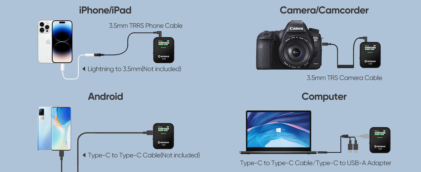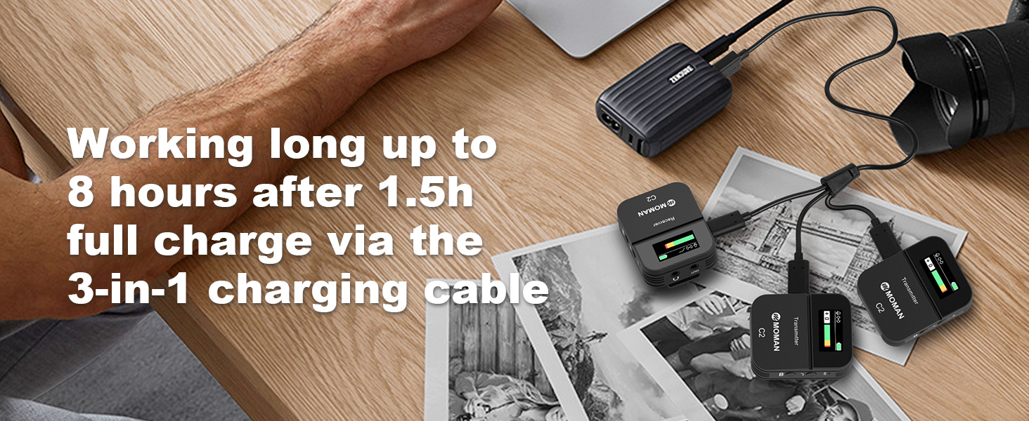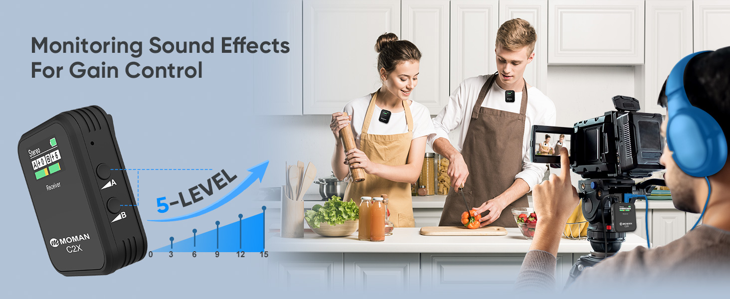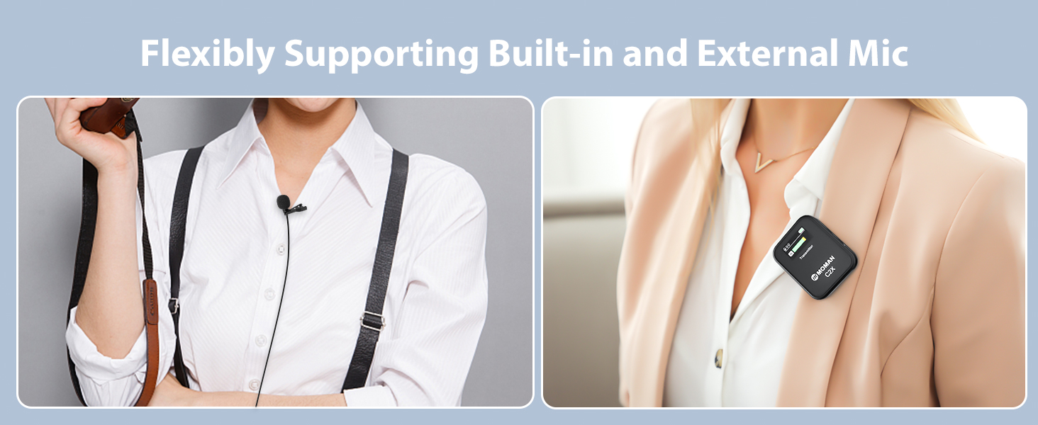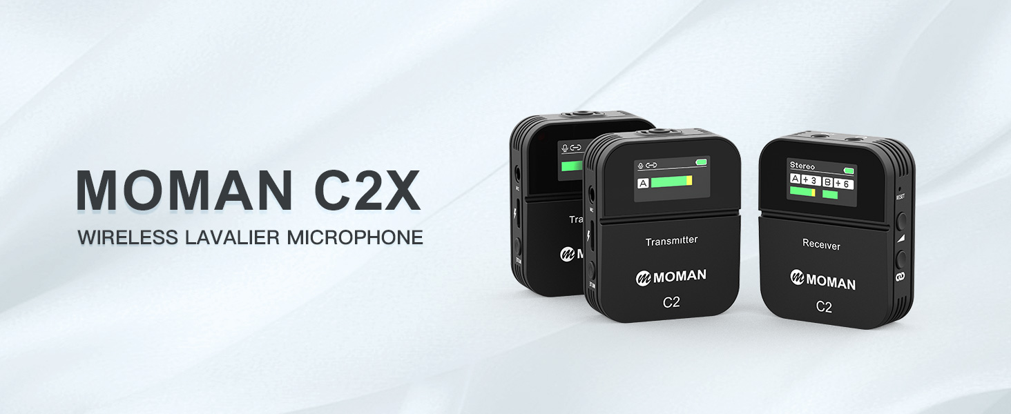 Moman Microfono Lavalier Wireless Professionale, C2X 2.4GHz Microfoni Senza Fili con Schermo TFT per Fotocamera Reflex Videocamera Smartphone Laptop, Microfono Lavalier Wireless Senza Fili : Elettronica