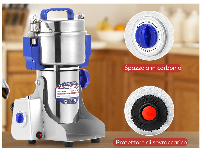 Moongiantgo 800g Mulino Elettrico per Cereali Maglia 50 300, Acciaio Inossidabile & 2500W 36000RPM Motore Commerciale, per Cereali, Spezie, ecc., con Protezione da Sovraccarico & Open Cover Stop : Amazon.it: Casa e cucina