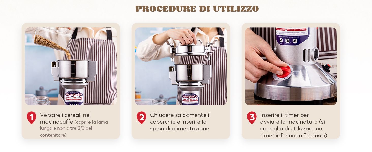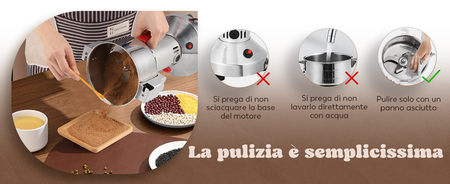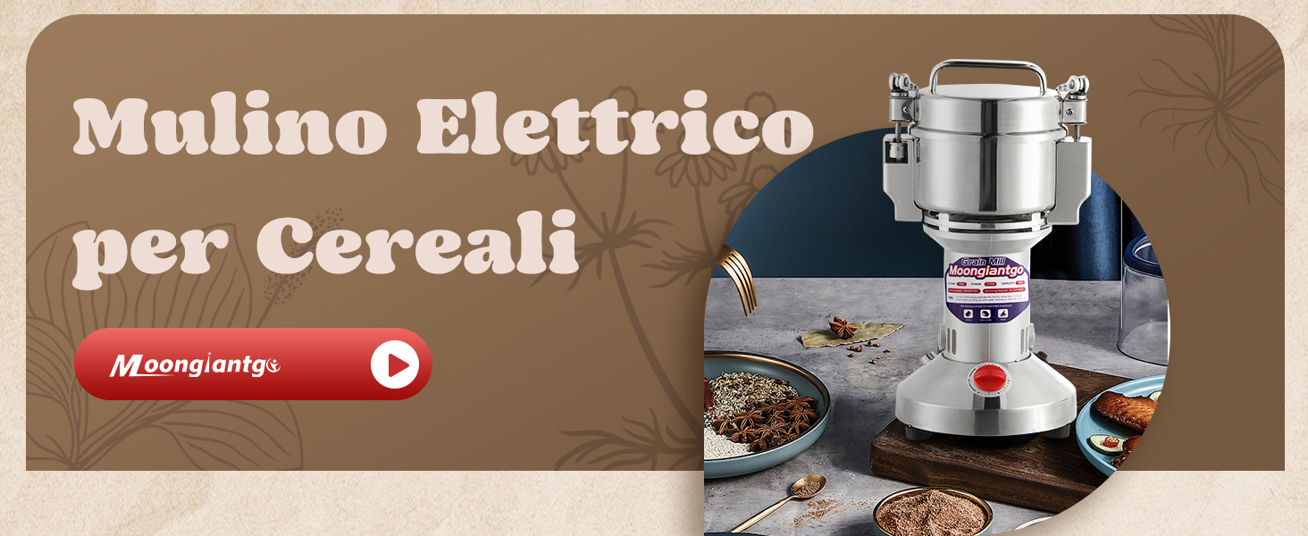 Moongiantgo Mulino Elettrico per Cereali 700g Acciaio Inossidabile, 2500W 36000RPM Motore Commerciale & Rettifica Superfine 30s, Protezione da Sovraccarico & Open Cover Stop, Per Grano, Spezie, Ecc. : Amazon.it: Casa e cucina