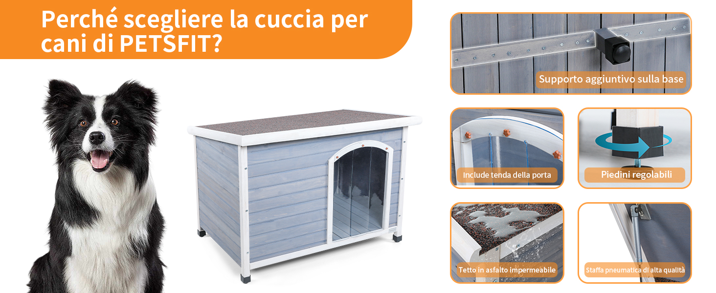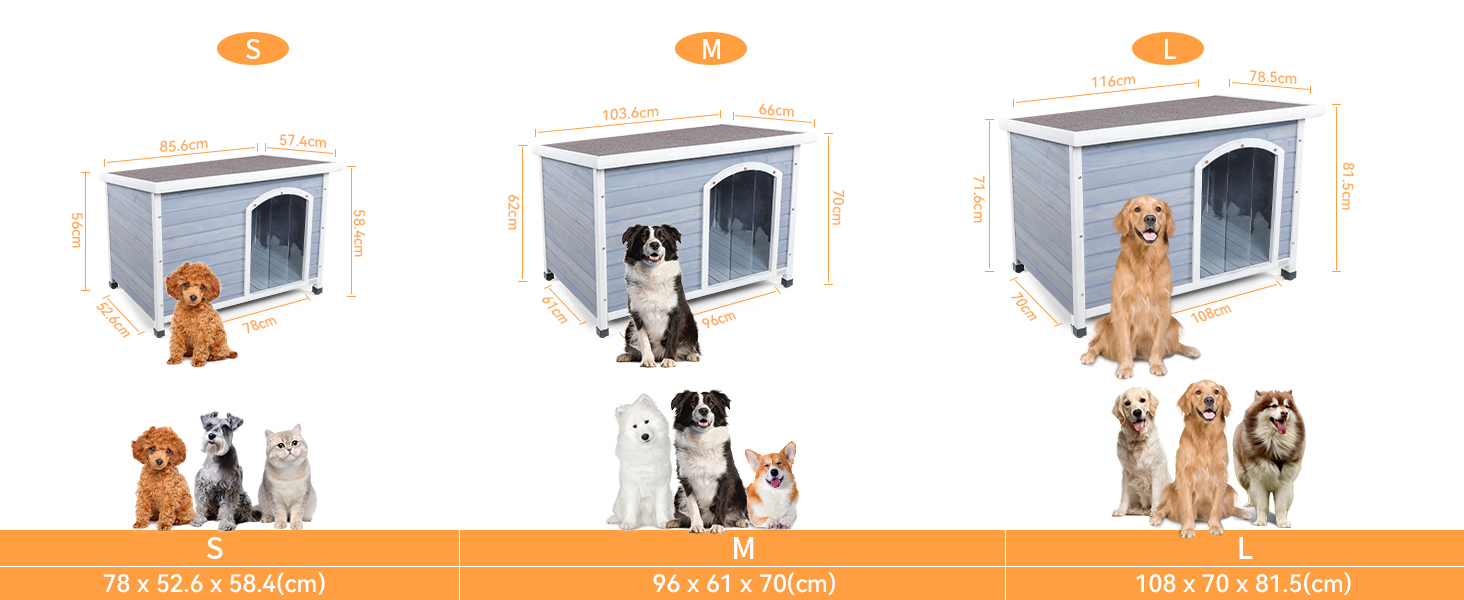 Informazioni su questo articolo Design impermeabile: il tetto inclinato e il design della scanalatura garantiscono una buona capacità di drenaggio e la porta è dotata di tenda in PVC. Le nostre cucce per cani da esterno sono resistenti alla pioggia in caso di maltempo e riparate dal sole in caso di bel tempo. Facile da pulire: il tetto è facile da aprire. I pannelli del pavimento sono rimovibili per una facile pulizia. Materiale durevole: Realizzato in legno massello e rivestito con vernice a base d’acqua. L’installazione è semplice e può essere facilmente assemblata utilizzando fori preforati. Piattaforma rialzata di 7,8 cm: La parte inferiore della cuccia ha una piattaforma rialzata di 7,8 cm per evitare che l'acqua piovana bagni il pavimento. Mantiene la cuccia asciutta e calda. 3 Dimensioni: Offriamo tre dimensioni, S (78 x 52,6 x 58,4 cm), M (96 x 61 x 70 cm), L (108 x 70 x 81,5 cm). Le tre dimensioni si adattano a diverse taglie di cani. › Visualizza altri dettagli prodotto Informazioni su questo articolo Design impermeabile: il tetto inclinato e il design della scanalatura garantiscono una buona capacità di drenaggio e la porta è dotata di tenda in PVC. Le nostre cucce per cani da esterno sono resistenti alla pioggia in caso di maltempo e riparate dal sole in caso di bel tempo. Facile da pulire: il tetto è facile da aprire. I pannelli del pavimento sono rimovibili per una facile pulizia. Materiale durevole: Realizzato in legno massello e rivestito con vernice a base d’acqua. L’installazione è semplice e può essere facilmente assemblata utilizzando fori preforati. Piattaforma rialzata di 7,8 cm: La parte inferiore della cuccia ha una piattaforma rialzata di 7,8 cm per evitare che l'acqua piovana bagni il pavimento. Mantiene la cuccia asciutta e calda. 3 Dimensioni: Offriamo tre dimensioni, S (78 x 52,6 x 58,4 cm), M (96 x 61 x 70 cm), L (108 x 70 x 81,5 cm). Le tre dimensioni si adattano a diverse taglie di cani. › Visualizza altri dettagli prodotto Product details