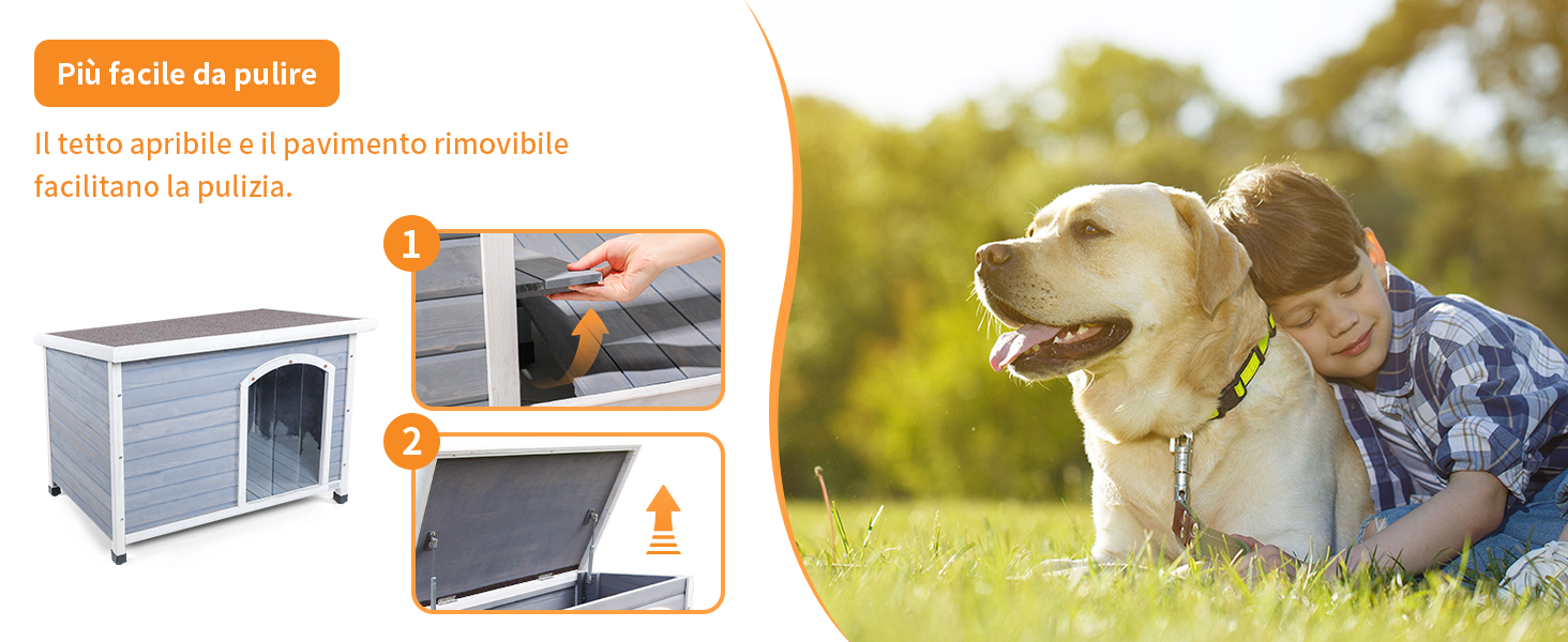 Petsfit Casetta per Cani da Esterno, con Pavimento Rimovibile, Tetto Apribile in Legno, Cuccia per Cane da Esterno, 78 x 52 x 58 cm grigio : Amazon.it: Prodotti per animali domestici