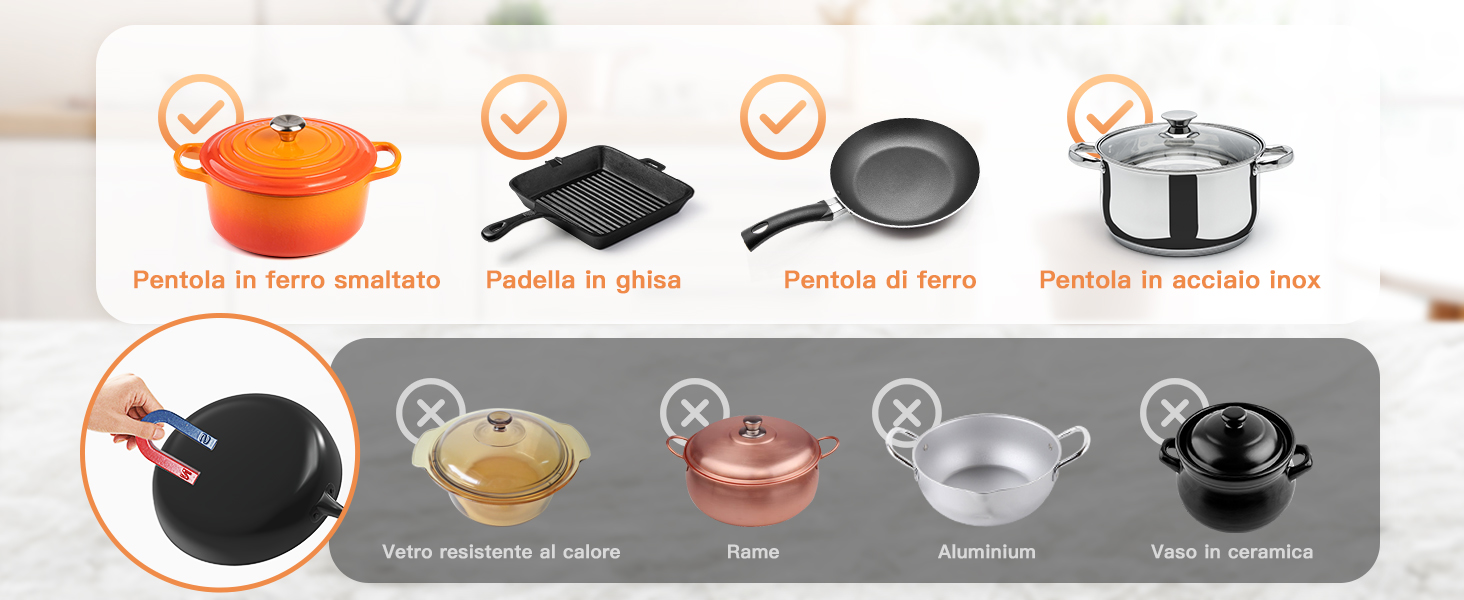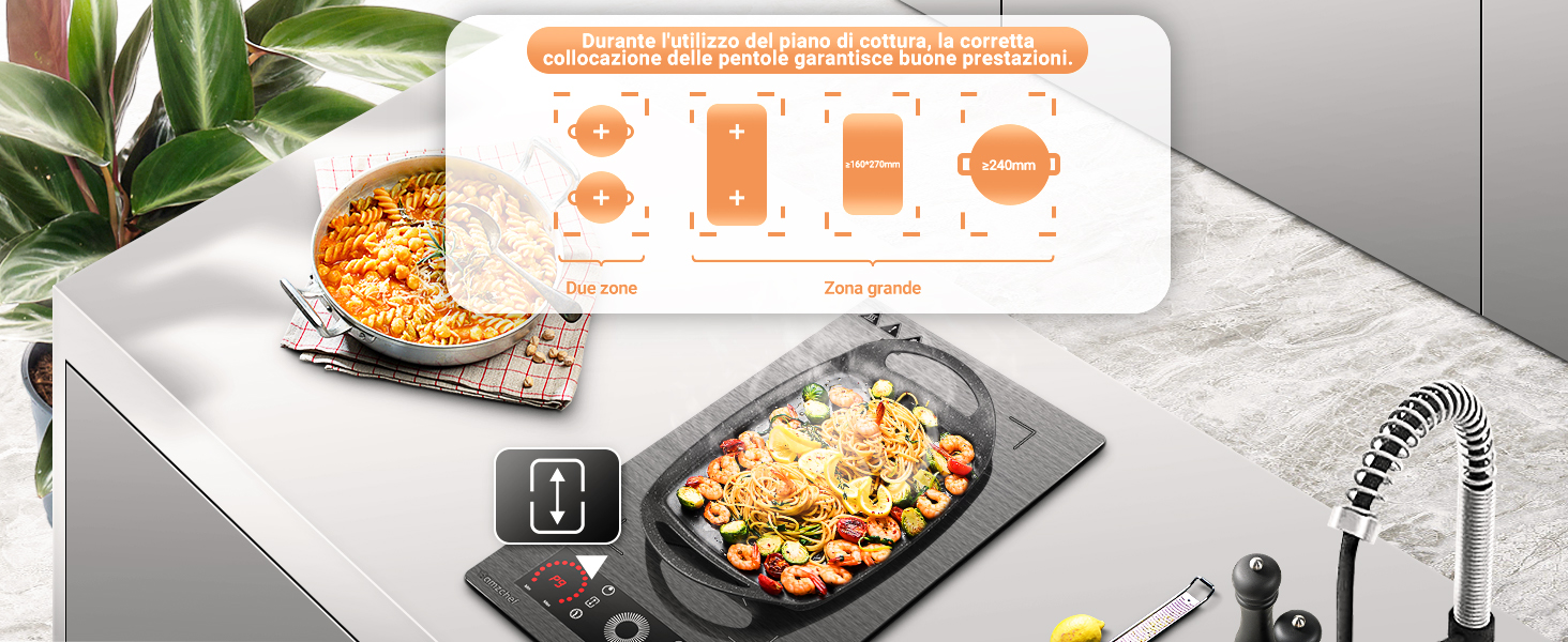 Informazioni su questo articolo 【piano cottura a induzione con zone flexi e spina】 Una zona flexi lunga è adatta per 2 riscaldatori separati o per il riscaldamento del grill quando è necessaria una padella lunga. La zona flexi è un'ampia area di riscaldamento in cui è stata adottata la più recente funzione di rilevamento automatico e di riscaldamento flexi. Riscalda esattamente l'area coperta dalla padella e rende il riscaldamento più uniforme. 【9 livelli di potenza e cursore a sfioramento 】Il piano cottura a induzione a 2 dischi è controllato da un sensore digitale a sfioramento che consente di gestire facilmente 9 livelli di potenza. Selezionate i livelli P1-4 per ottenere un riscaldamento intermittente e cucinare i cibi a diverse temperature, come ad esempio bollire, cuocere al vapore, saltare in padella, soffriggere e preparare zuppe. 【Pannello in cristallo nero e funzioni di sicurezza】Questo piano cottura a induzione da incasso è dotato di un pannello in cristallo nero di alta qualità, resistente al calore, all'usura e facile da pulire. Dotato di un blocco di sicurezza e di una protezione contro il surriscaldamento, il piastra a induzione 2 fuochi si spegne automaticamente se la temperatura è troppo alta. 【Timer da 99 minuti】Il piastra induzione doppia è dotato di una funzione timer che va da 1 a 99 minuti. Se improvvisamente si ha qualcosa di urgente da fare mentre si cucina, è possibile impostare il timer in modo che il piano di cottura a induzione si spenga automaticamente al raggiungimento del conto alla rovescia. Il piano cottura a induzione funziona con pentole magnetiche, come ferro, ghisa, ferro smaltato, acciaio inox con magnete. 【Specifiche】 Dimensioni del prodotto: 30 cm × 52 cm × 6,2 cm; dimensioni del taglio: (27,6~27,8)cm x (48,8~49)cm. Questo piastra induzione portatile è adatto per l'uso da tavolo e da incasso. In caso di domande (ad es. accessori mancanti), vi preghiamo di contattarci immediatamente. › Visualizza altri dettagli prodotto Informazioni su questo articolo 【piano cottura a induzione con zone flexi e spina】 Una zona flexi lunga è adatta per 2 riscaldatori separati o per il riscaldamento del grill quando è necessaria una padella lunga. La zona flexi è un'ampia area di riscaldamento in cui è stata adottata la più recente funzione di rilevamento automatico e di riscaldamento flexi. Riscalda esattamente l'area coperta dalla padella e rende il riscaldamento più uniforme. 【9 livelli di potenza e cursore a sfioramento 】Il piano cottura a induzione a 2 dischi è controllato da un sensore digitale a sfioramento che consente di gestire facilmente 9 livelli di potenza. Selezionate i livelli P1-4 per ottenere un riscaldamento intermittente e cucinare i cibi a diverse temperature, come ad esempio bollire, cuocere al vapore, saltare in padella, soffriggere e preparare zuppe. 【Pannello in cristallo nero e funzioni di sicurezza】Questo piano cottura a induzione da incasso è dotato di un pannello in cristallo nero di alta qualità, resistente al calore, all'usura e facile da pulire. Dotato di un blocco di sicurezza e di una protezione contro il surriscaldamento, il piastra a induzione 2 fuochi si spegne automaticamente se la temperatura è troppo alta. 【Timer da 99 minuti】Il piastra induzione doppia è dotato di una funzione timer che va da 1 a 99 minuti. Se improvvisamente si ha qualcosa di urgente da fare mentre si cucina, è possibile impostare il timer in modo che il piano di cottura a induzione si spenga automaticamente al raggiungimento del conto alla rovescia. Il piano cottura a induzione funziona con pentole magnetiche, come ferro, ghisa, ferro smaltato, acciaio inox con magnete. 【Specifiche】 Dimensioni del prodotto: 30 cm × 52 cm × 6,2 cm; dimensioni del taglio: (27,6~27,8)cm x (48,8~49)cm. Questo piastra induzione portatile è adatto per l'uso da tavolo e da incasso. In caso di domande (ad es. accessori mancanti), vi preghiamo di contattarci immediatamente. › Visualizza altri dettagli prodotto Product details