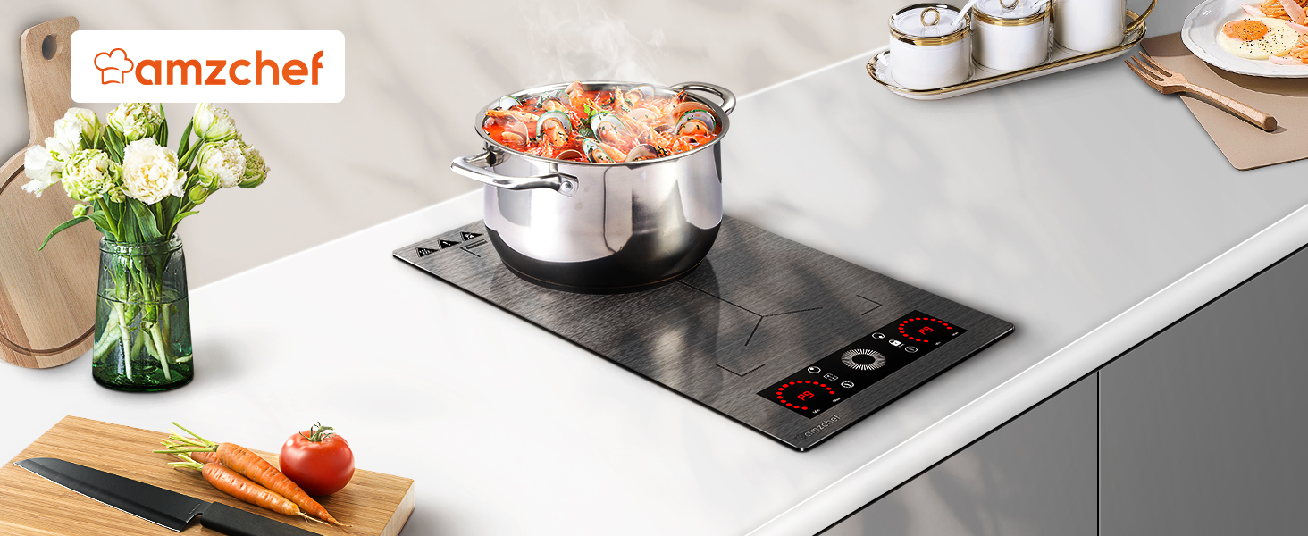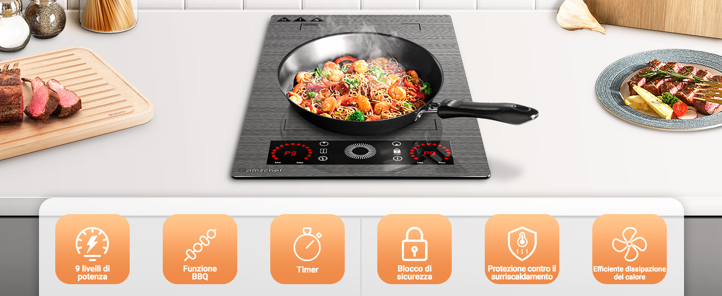 Piano Cottura Induzione con Flex zone, AMZCHEF Piastra a Induzione 2 Fuochi con 9 Livelli di Potenza, Riscaldamento Intermittente, Serrature e timer di sicurezza,Controllo Touch Slide,3300W,grigio : Amazon.it: Grandi elettrodomestici