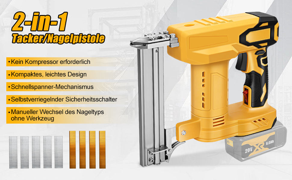 Pistola per unghie a batteria, compatibile con batteria Dewalt da 20 V, 100 W, per legno, con 500 chiodi e 500 graffette, senza batteria e caricatore : Amazon.it: Fai da te