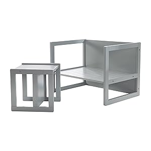 roba Set Tavolo Sgabello per Bambini Convertibile in Panca Stile Country – Mobili per Bambini – 3 Altezze – Multifunzionale Legno Laccato Bianco : Casa e cucina