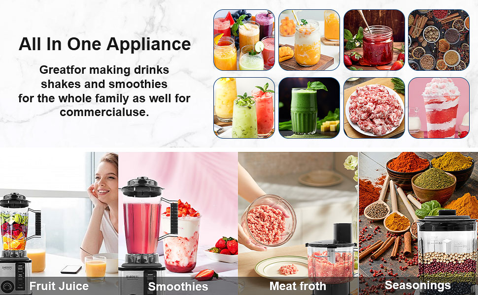Informazioni su questo articolo Potente frullatore per cucina: questo frullatore vanta un motore da 1200 W con un'alta velocità di 20000 giri/min. Questo frullatore per la cucina può gestire tutte le tue esigenze di miscelazione, tritare e macinare. Con 8 blandes, potrebbe tritare in 5 secondi senza aggiungere acqua extra. Sistema combinato frullatore e robot da cucina: funziona come frullatore professionale, robot da cucina e macinino, rendendolo lo strumento multifunzionale perfetto per qualsiasi cucina. Il frullatore per frullati include un tritatutto da 3 tazze e una tazza per macinare, espandendo le tue possibilità culinarie. Grande capacità: dotato di una brocca da 3 litri, questo frullatore per frullati è ideale per preparare grandi lotti di frullati, frullati, zuppe, schiacciate di ghiaccio e altro ancora. Questo frullatore resistente è perfetto per soddisfare le esigenze di uso commerciale, feste o cucine domestiche. Velocità e controllo regolabili: il frullatore da banco offre impostazioni a 15 velocità per un controllo preciso delle attività di miscelazione e lavorazione, garantendo risultati perfetti ogni volta. Il frullatore per frullati è dotato di un interruttore a velocità variabile e opzioni di impulsi con controllo manuale flessibile. Facile da pulire: pulire il barattolo del frullatore aggiungendo una piccola quantità di sapone per piatti e acqua calda, il frullatore può completare autonomamente il processo di pulizia entro 30-60 secondi. › Visualizza altri dettagli prodotto Informazioni su questo articolo Potente frullatore per cucina: questo frullatore vanta un motore da 1200 W con un'alta velocità di 20000 giri/min. Questo frullatore per la cucina può gestire tutte le tue esigenze di miscelazione, tritare e macinare. Con 8 blandes, potrebbe tritare in 5 secondi senza aggiungere acqua extra. Sistema combinato frullatore e robot da cucina: funziona come frullatore professionale, robot da cucina e macinino, rendendolo lo strumento multifunzionale perfetto per qualsiasi cucina. Il frullatore per frullati include un tritatutto da 3 tazze e una tazza per macinare, espandendo le tue possibilità culinarie. Grande capacità: dotato di una brocca da 3 litri, questo frullatore per frullati è ideale per preparare grandi lotti di frullati, frullati, zuppe, schiacciate di ghiaccio e altro ancora. Questo frullatore resistente è perfetto per soddisfare le esigenze di uso commerciale, feste o cucine domestiche. Velocità e controllo regolabili: il frullatore da banco offre impostazioni a 15 velocità per un controllo preciso delle attività di miscelazione e lavorazione, garantendo risultati perfetti ogni volta. Il frullatore per frullati è dotato di un interruttore a velocità variabile e opzioni di impulsi con controllo manuale flessibile. Facile da pulire: pulire il barattolo del frullatore aggiungendo una piccola quantità di sapone per piatti e acqua calda, il frullatore può completare autonomamente il processo di pulizia entro 30-60 secondi. › Visualizza altri dettagli prodotto Product details