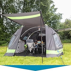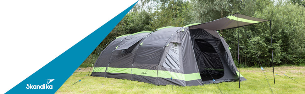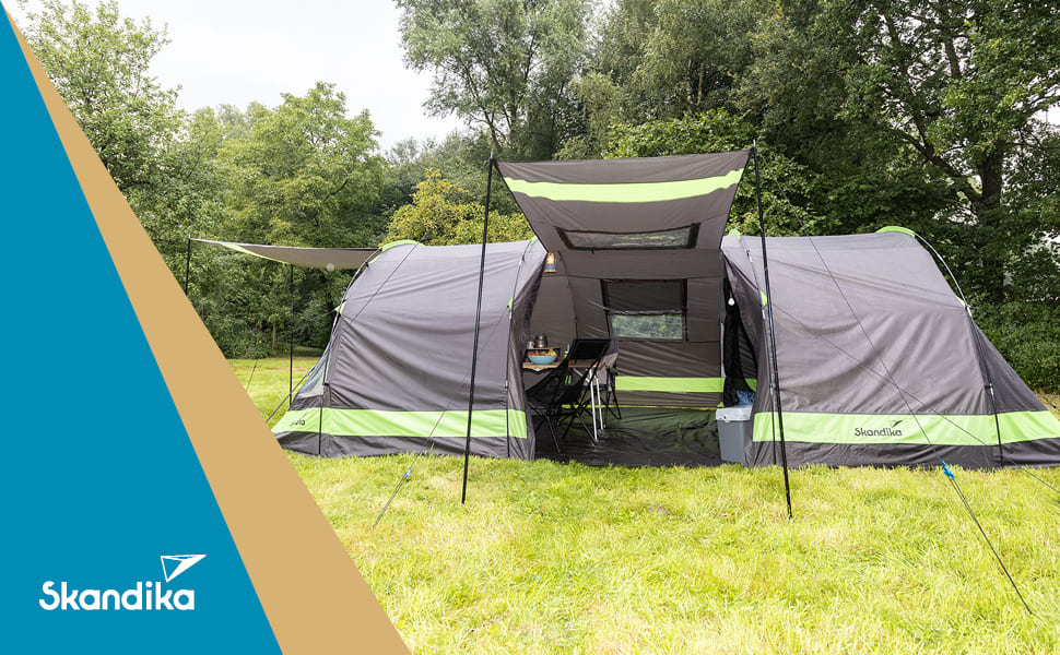 Skandika Kambo Tenda de campeggio tunnel Cabina letto per 6/8/12 persone Impermeabile con 3000 colonne d'acqua 2 m di altezza 3 ingressi tenda da sole (grigio/verde/8 persone) : Amazon.it: Sport e tempo libero