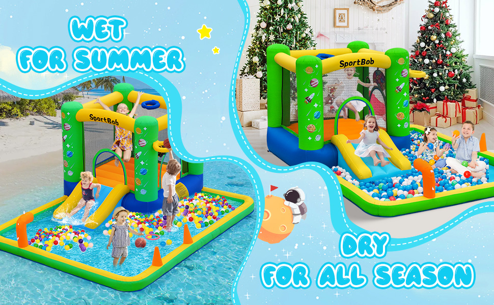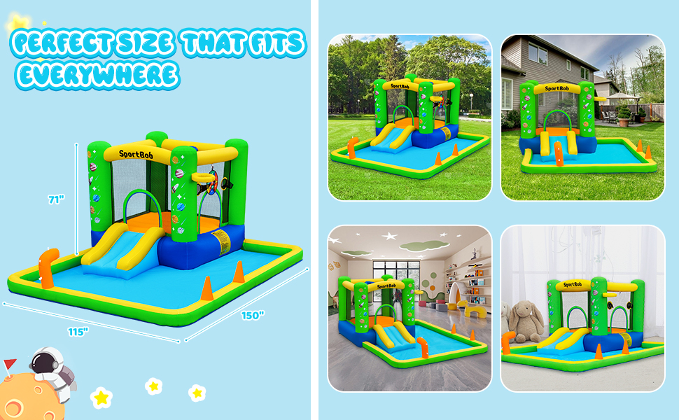 SportBob Castello Gonfiabile con Ventilatore 381 ×292 ×180 cm,Castello Gonfiabile per Bambini Scivolo d'Acqua con la Pistola ad Acqua, Salto, Cerchio da Basket Verde : Amazon.it: Giochi e giocattoli
