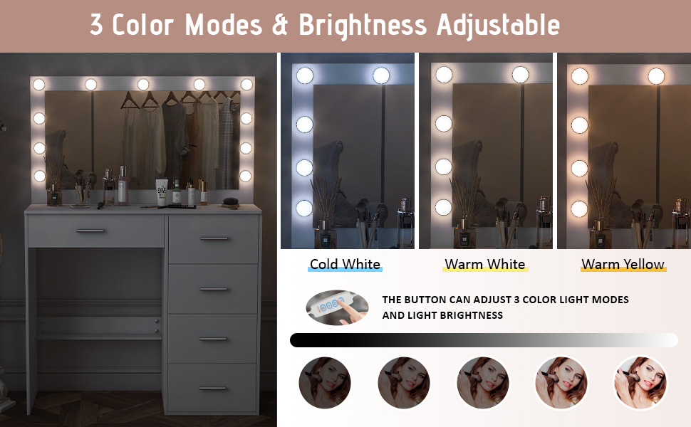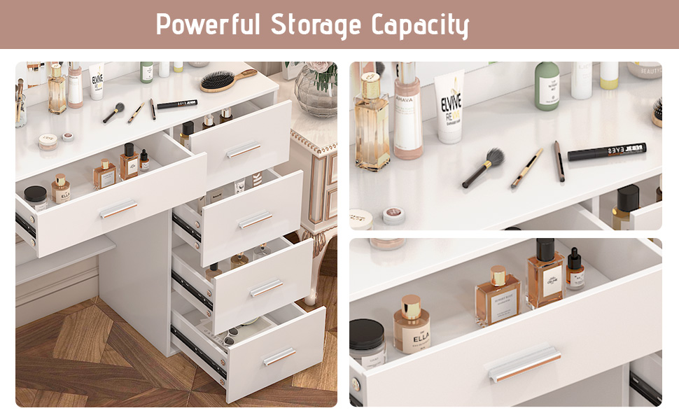 Teousev Toilette Trucco con Specchio, Toeletta Trucco con Luci, Postazione Trucco con 5 Cassetti, Tavolo Trucco per La Camera Da Letto, 80X36X131cm, Bianco, JR27 : Amazon.it: Casa e cucina