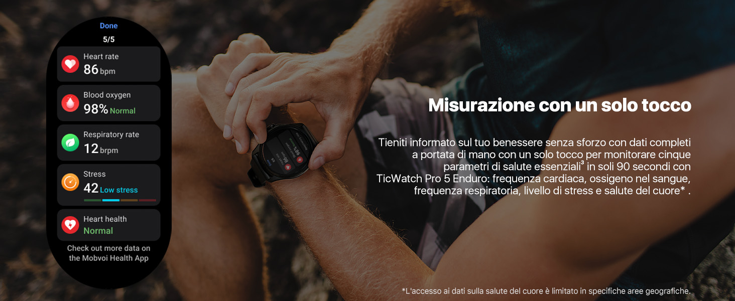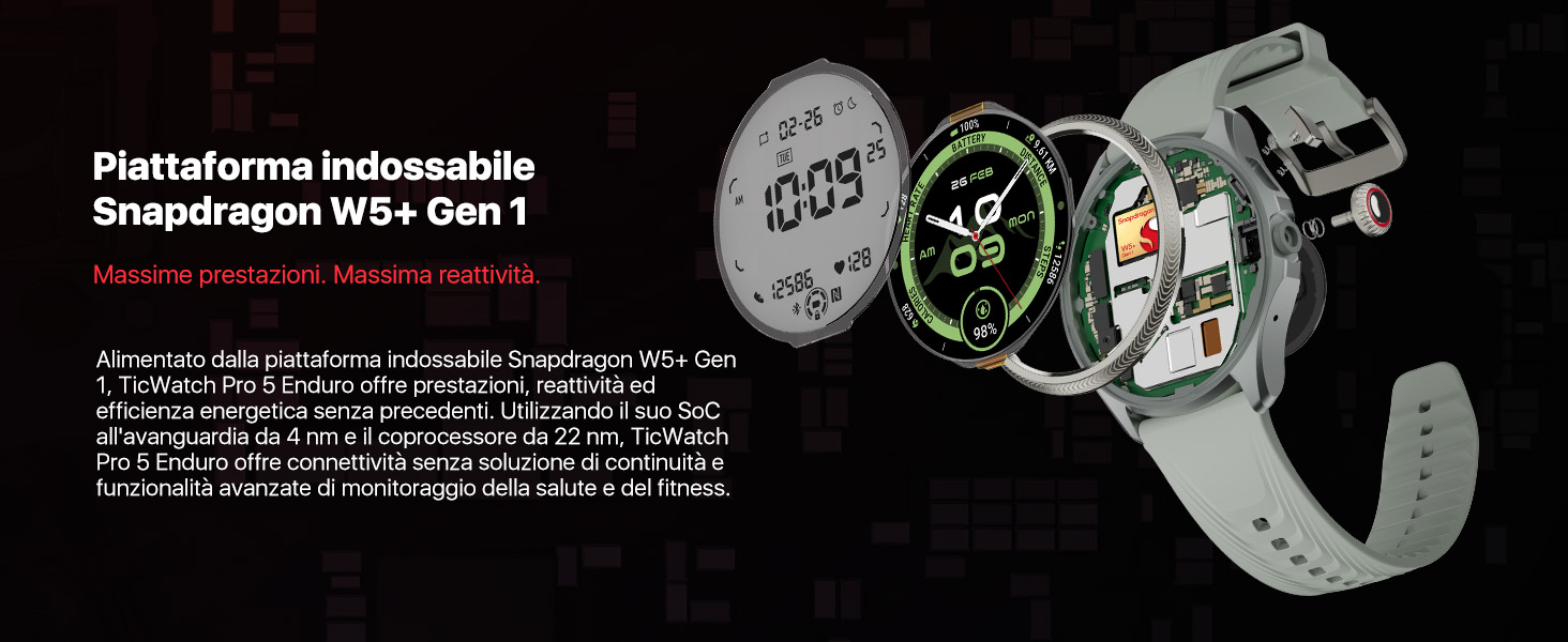 Sistema operativo Wear OS 4 Capacità della memoria 32 GB Caratteristica speciale Accelerometer, Activity Tracker, Daily Workout Memory, GPS, Music Player Tecnologia di connettività Bluetooth, Wi-Fi, NFC Standard di comunicazione wireless Frequenza radio 2,4 GHz Composizione delle celle delle batterie Ioni di litio Forma Rotondo Dimensioni schermo 1,43 Pollici Marchio Ticwatch Nome modello TicWatch Pro 5 Enduro Slate Product details