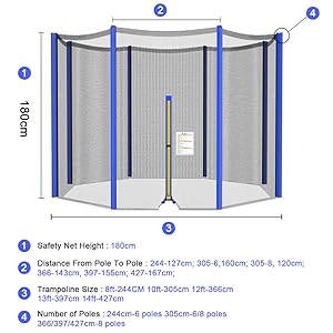 ULTRAPOWER SPORTS Protezione per Bordo di Tappeto Elastico & Rete di Sicurezza per Trampolino con 244 305 366 397cm Resistente a Raggi UV e Strappo : Amazon.it: Sport e tempo libero